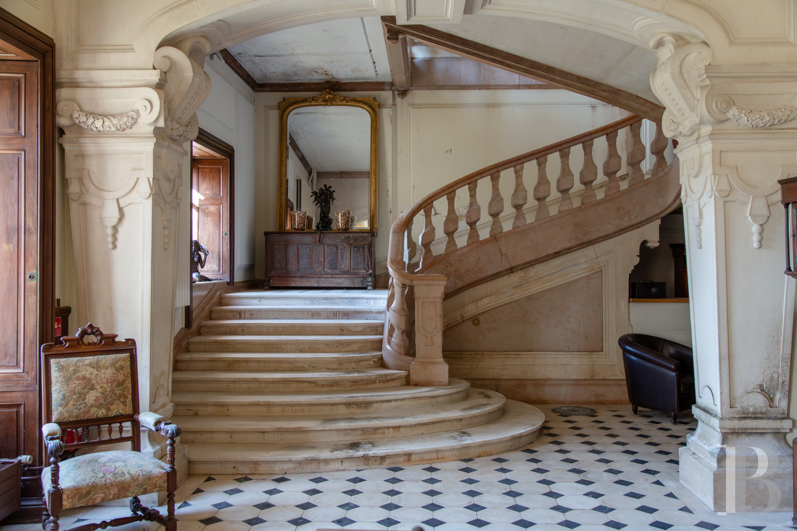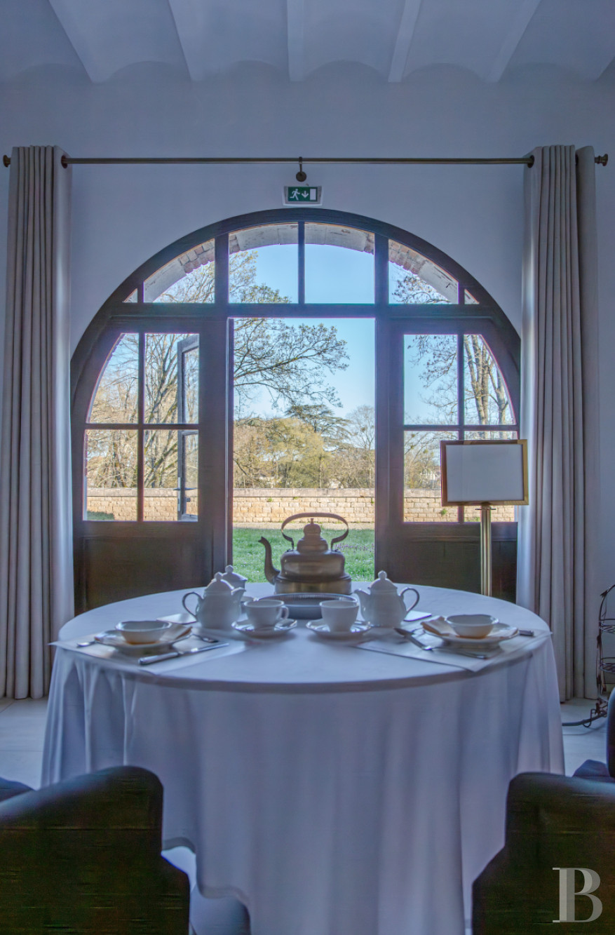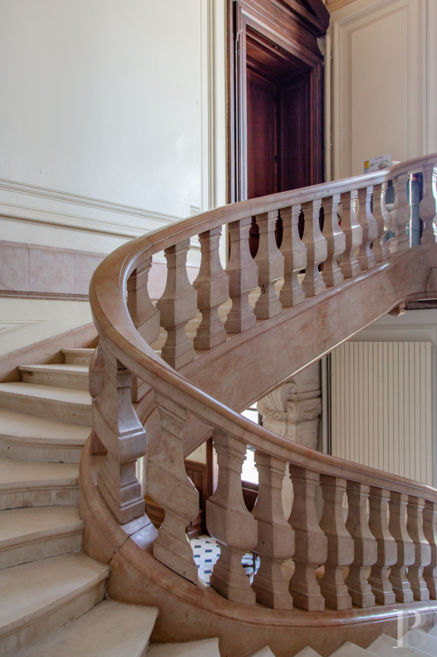 Le rez-de-chausséeLe vestibule, au sol revêtu d'un dallage à cabochons et aux soubassements moulurés, d'où s'élève l'escalier en pierre à balustres, donne la mesure du lieu. Une arche couronnée d’un fronton, compose un vocabulaire ornemental caractéristique des demeures du 19e s. Cette entrée dessert les espaces de réception et les principales pièces du rez-de-chaussée : la salle à manger privative, la salle de restaurant communiquant avec le jardin, ainsi que les espaces de service, comprenant les cuisines ainsi que plusieurs chambres à coucher associées à leur salle d’eau privative.