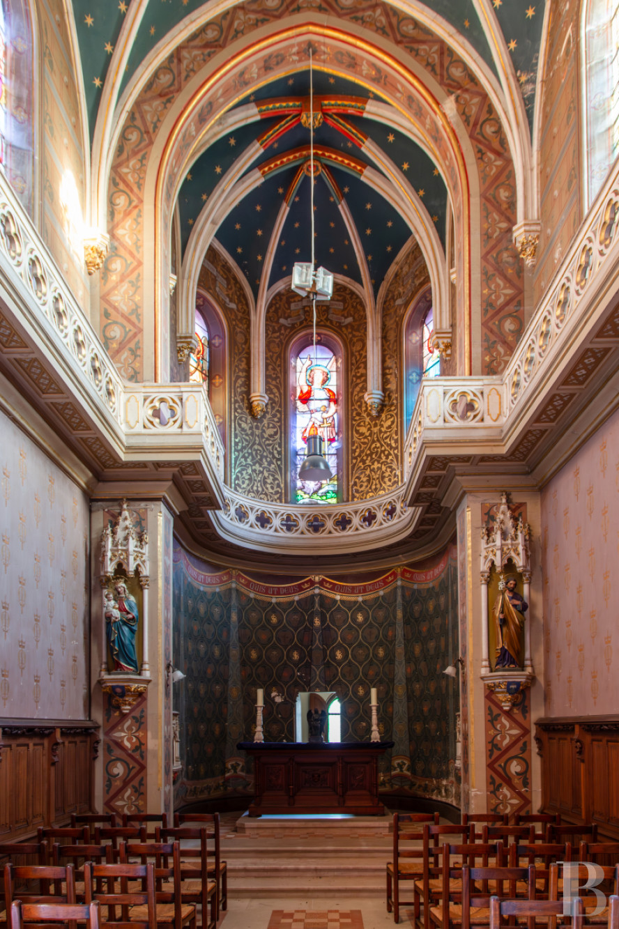 Fonctionnelles, elles sont structurées autour de deux axes : le premier, le plus patrimonial, se distingue par la présence d’une chapelle entièrement restaurée et classée, et d'un pigeonnier. La chapelle dans son esprit néogothique, déploie un décor intérieur d’une grande richesse ornementale : voûtes en forme d’ogive et vitraux polychromes. Le second regroupe un ensemble de bâtiments dont la rénovation, demeurée inachevée, laisse néanmoins percevoir la générosité des volumes et la permanence d’un vocabulaire architectural en cohérence avec celui du château.Le parc