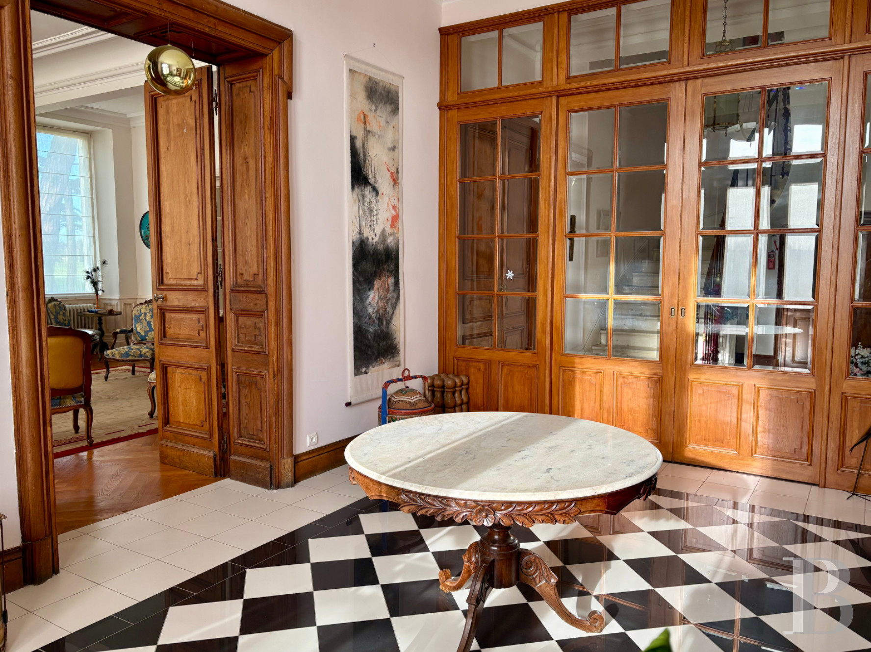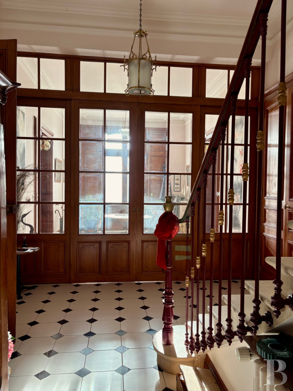 Le rez-de-chausséeL’entrée dessert, d’un côté, deux salons en enfilade et, de l’autre, une salle à manger ainsi qu'un dégagement qui permet de rejoindre une cuisine puis une arrière-cuisine qui sert de buanderie et ouvre sur une cour. Les parquets sont en chêne : à bâtons rompus dans le grand salon et la salle à manger; à l’anglaise dans le petit salon. Le sol de l’entrée est à damier noir et blanc. Des cheminées en marbre rehaussent les trois pièces de réception. Des toilettes sont accessibles depuis la salle à manger. Dans l’entrée, derrière une double porte vitrée, un escalier en pierre, d’une volée à quartiers tournants, conduit aux étages, également desservis par un ascenseur situé dans le dégagement.