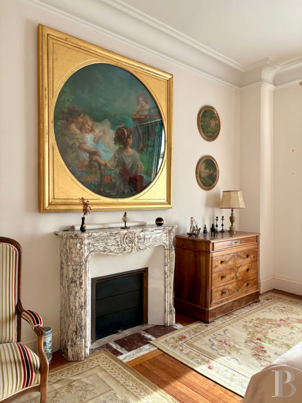 Un palier donne accès, d’un côté, à un dégagement qui distribue un appartement et deux chambres, dont une avec salle d’eau. De l’autre côté se succèdent quatre chambres, dont une avec salle d’eau, une autre avec une salle d'eau et des toilettes. L’appartement est composé d’un salon avec placards, d’une chambre et d’une salle de bains avec toilettes. Les sols sont parquetés en chêne à l’anglaise et certaines des chambres ont une cheminée en marbre.
