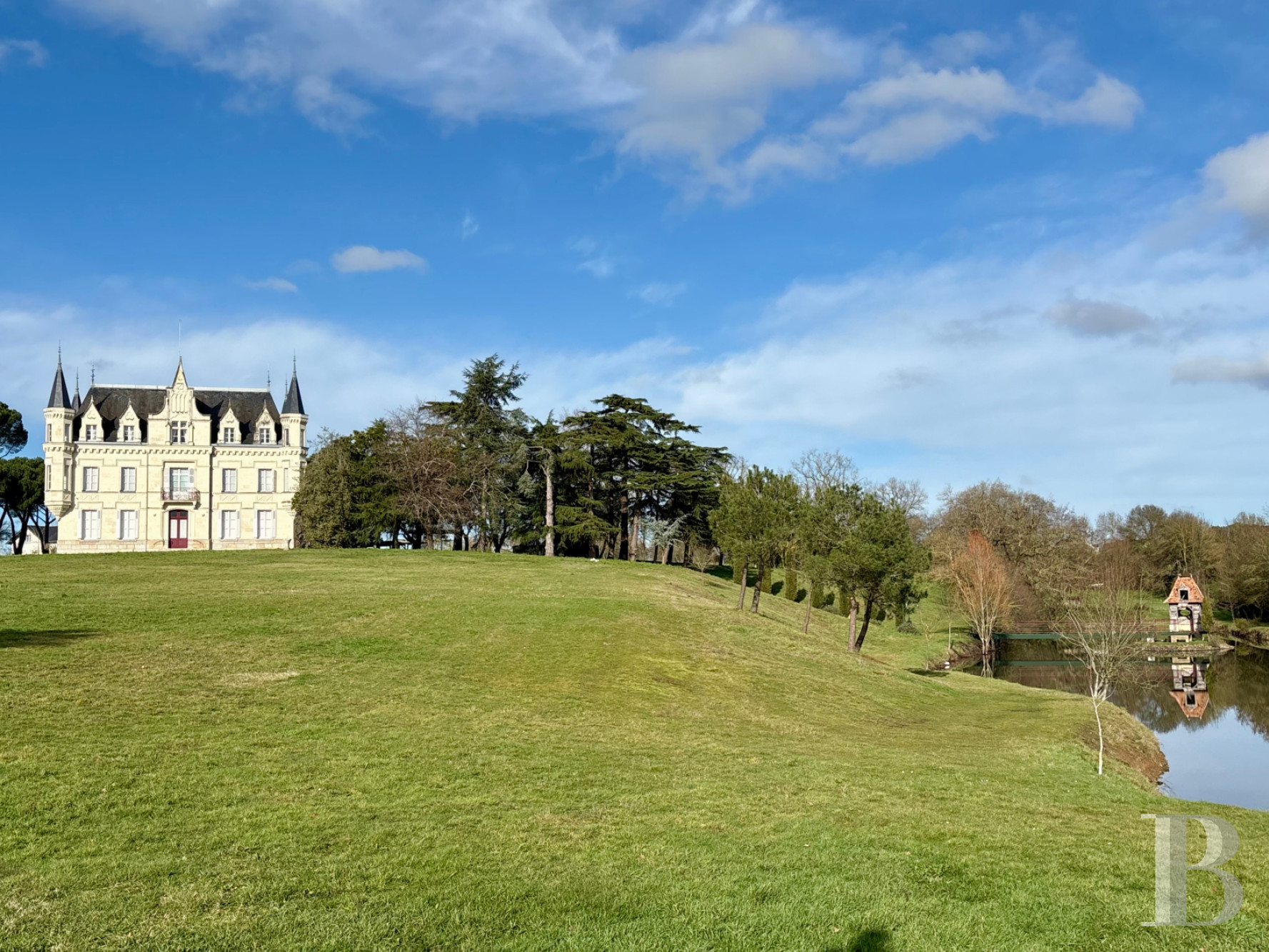 Il est jalonné de nombreuses essences, dont des cèdres, des chênes, des tilleuls, des marronniers, des pins ou encore des cyprès. Certains sujets sont plus que centenaires. L'ensemble comprend un plan d’eau artificiel de plus de 7000 m², relié au château par un escalier en gradins qui dessert, au passage, une petite gloriette au toit de tuiles, installée sur une île accessible par une passerelle. Une serre est implantée dans la partie ouest du parc, de même qu’un puits coiffé d'un toit à l’impériale en ardoise, posé sur quatre piliers en granit. Environ 1 ha sur les 7 est constructible.Ce que nous en pensons