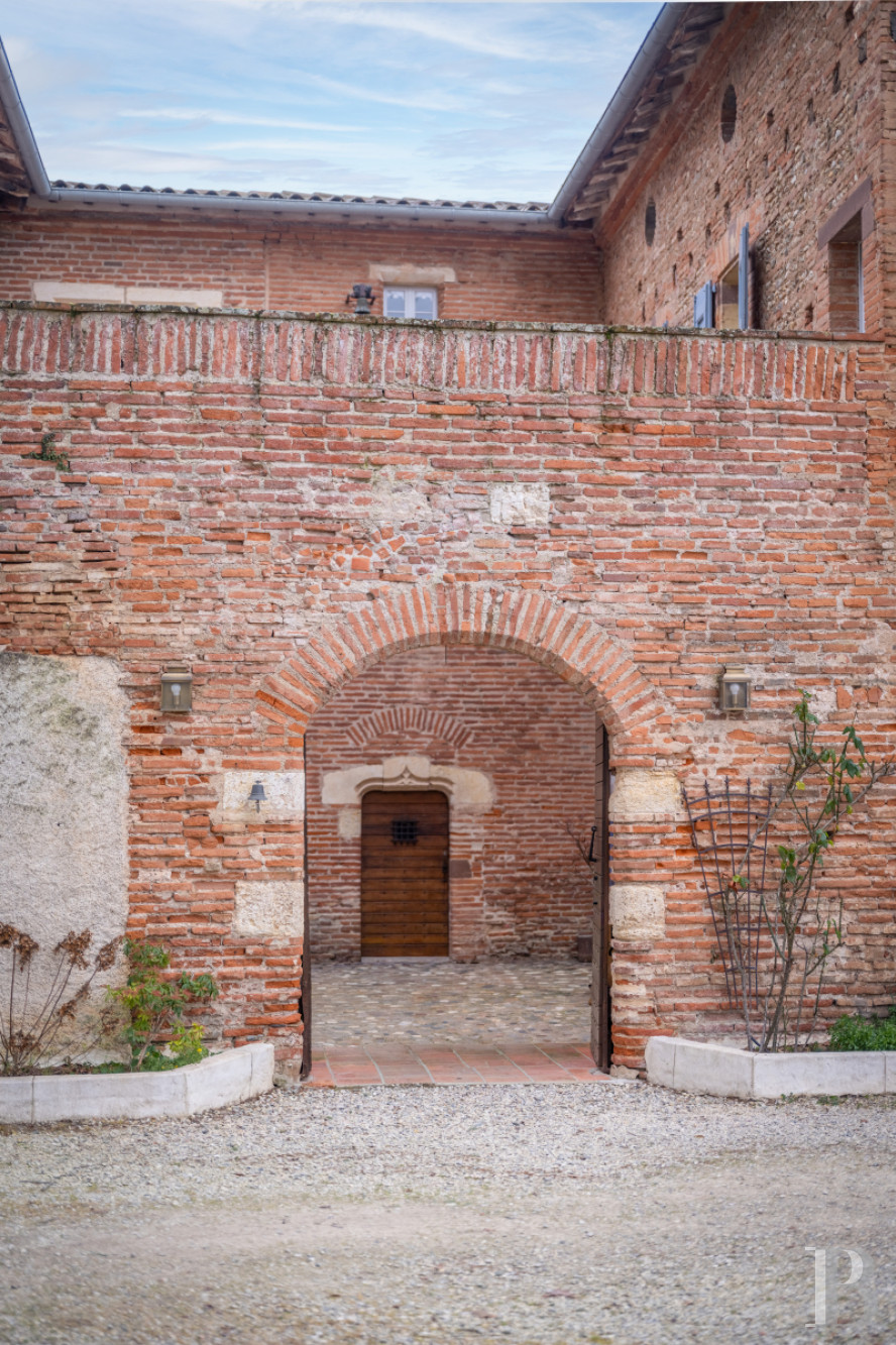 Demeure de la fin de la Renaissance, il s’organise autour d’une cour en U, fermée sur son quatrième côté par un mur bas percé d’une porte cochère. Bien qu’en grande partie dans son état d’origine, il est jalonné de plusieurs portes en accolade de style tardif ainsi que des baies à meneaux. L’ensemble a été traité dans un vocabulaire architectural rustique et mesuré, conforme à celui d’une maison de campagne noble. Le plan présente une singularité notable : il évoque davantage celui d’un hôtel particulier urbain que celui d’une demeure tournée vers la campagne. Édifié en brique foraine, le château évoque ainsi un hôtel de la Renaissance toulousaine posé au bord du Tarn. La cour, orientée à l’est, met en évidence la chronologie du bâtiment : l’aile ouest, la plus ancienne, abrite l’escalier en vis ; l’aile sud date du 17e s. ; l’aile nord a été reprise au 19e s. Derrière la porte cochère, la cour est pavée de galets et encadrée de façades percées de baies à meneaux en pierre de taille. La porte principale, sous son linteau en accolade finement mouluré, en constitue le point focal.Le rez-de-chaussée