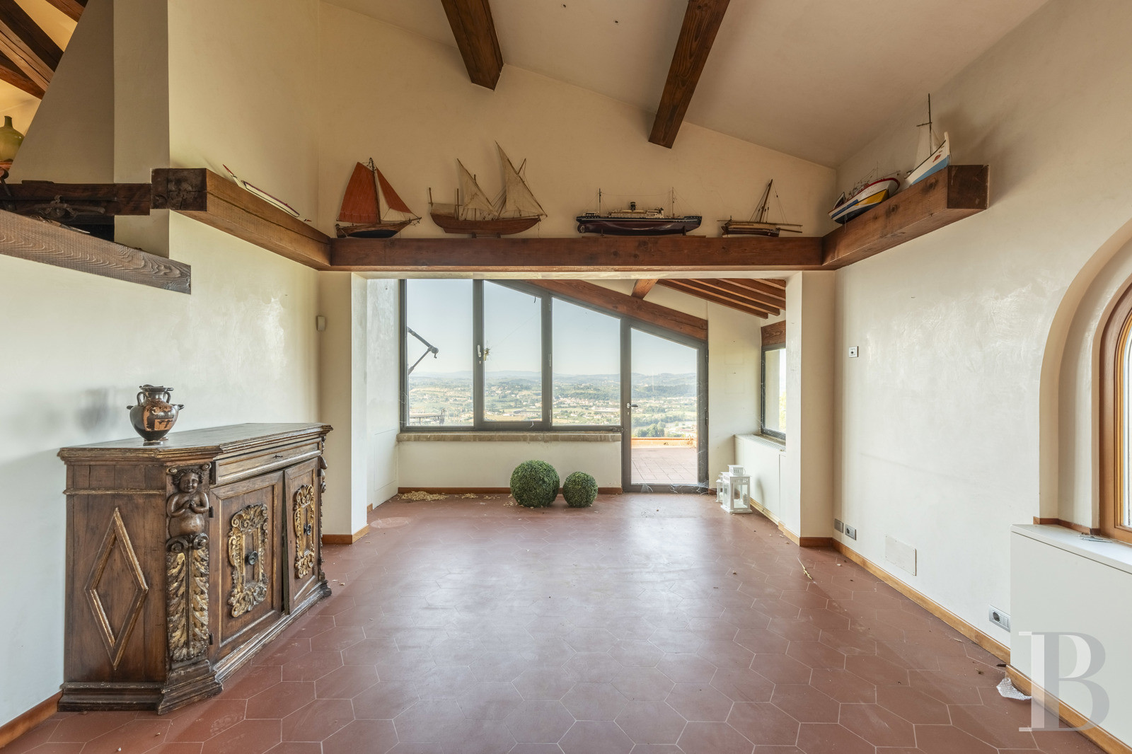 Une villa blottie sur les hauteurs, parfaitement ancrée dans le paysage toscan, idéalement située aux portes de Florence. L'architecture conjugue l'authenticité d'une demeure historique avec de nombreux éléments d'origine préservés. Cheminées en pierre, fenêtres cintrées, sols en terre cuite : tous contribuent à la prestance naturelle de la propriété. Grâce à sa composition harmonieuse, entre la distribution réfléchie des espaces et l'agencement du vaste domaine de 8 hectares, propice aux réceptions en plein air, il s'en dégage un caractère campagnard teinté d'élégance. Les salons de la villa principale s'ouvrent sur les terrasses panoramiques, la dépendance offre son autonomie avec ses vues à 270 degrés, tandis que l'oliveraie et le vignoble dessinent un écrin végétal authentique. Le jardin, ponctué de citronniers et de détails typiques, accompagne les loggia spacieuses où imaginer les soirées d'été face à Florence illuminée. L'endroit destine ses futurs occupants à y passer des moments privilégiés, en famille ou entre amis, promesse d'une vie à la campagne, à quelques minutes seulement de l'une des villes les plus admirées du monde.