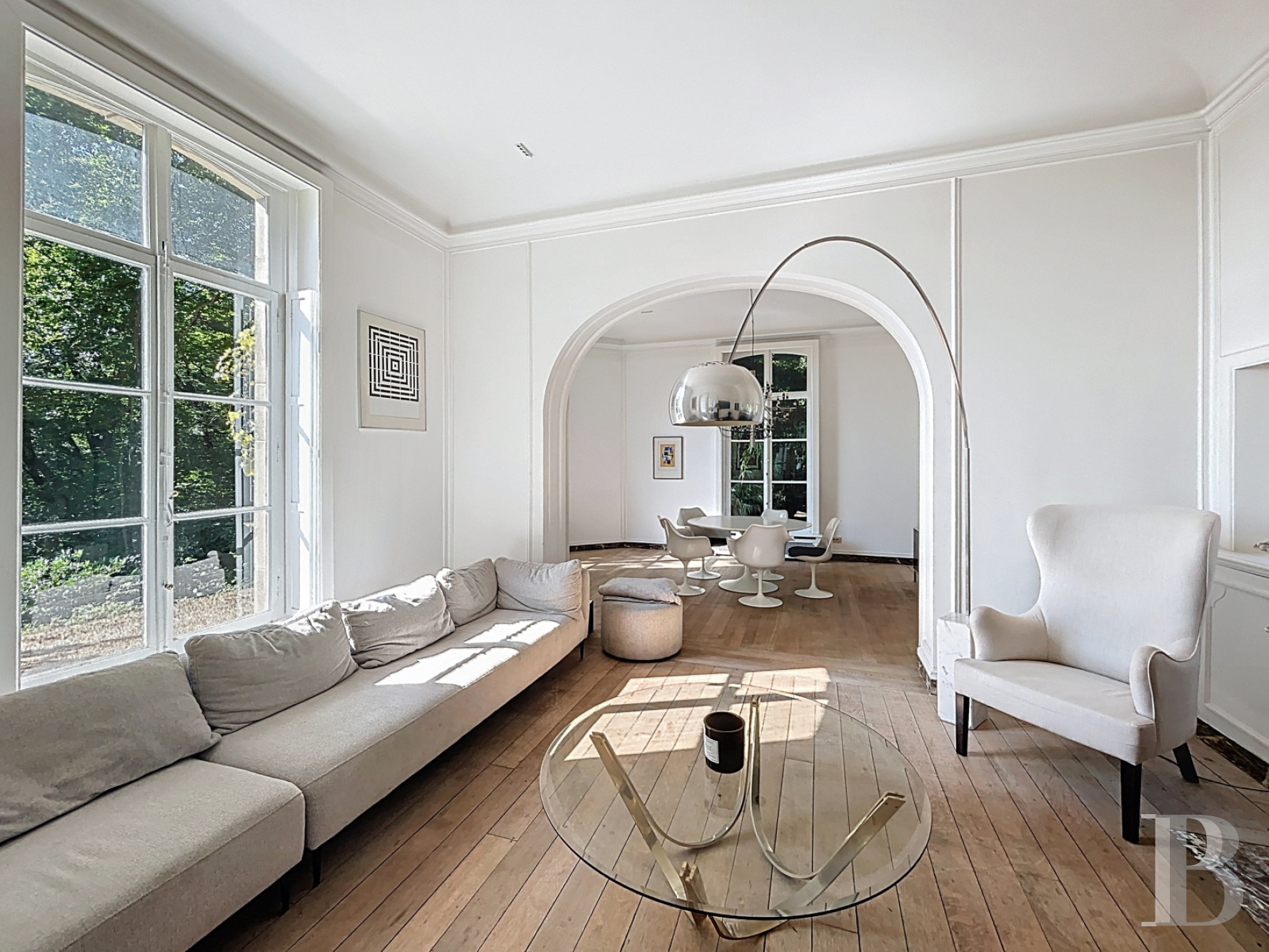 Dominant la Meuse depuis son promontoire historique, une demeure de 630 m² habitables qui s'épanouit sur un parc de près de deux hectares et demi, dans un juste équilibre entre ouverture sur le paysage et intimité préservée. Le manoir principal et sa conciergerie témoignent d'une restauration menée avec intelligence, respectueuse de l'âme des lieux tout en assumant pleinement sa modernité. Les 510 m² du manoir révèlent des volumes généreux où lumière et fonctionnalité se répondent : vaste séjour, cuisine pensée pour recevoir, cinq chambres dont une suite refuge. La conciergerie indépendante de 120 m² élargit encore les possibles. Ici, chaque matériau choisi, chaque détail pensé concourt à créer un lieu où l'art de vivre trouve sa plus belle expression.