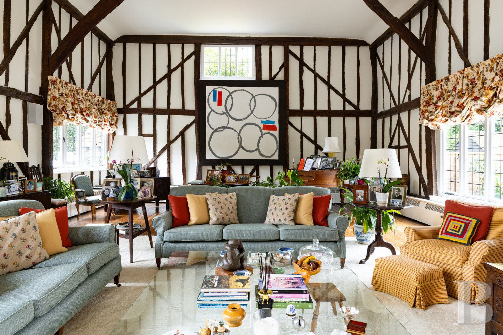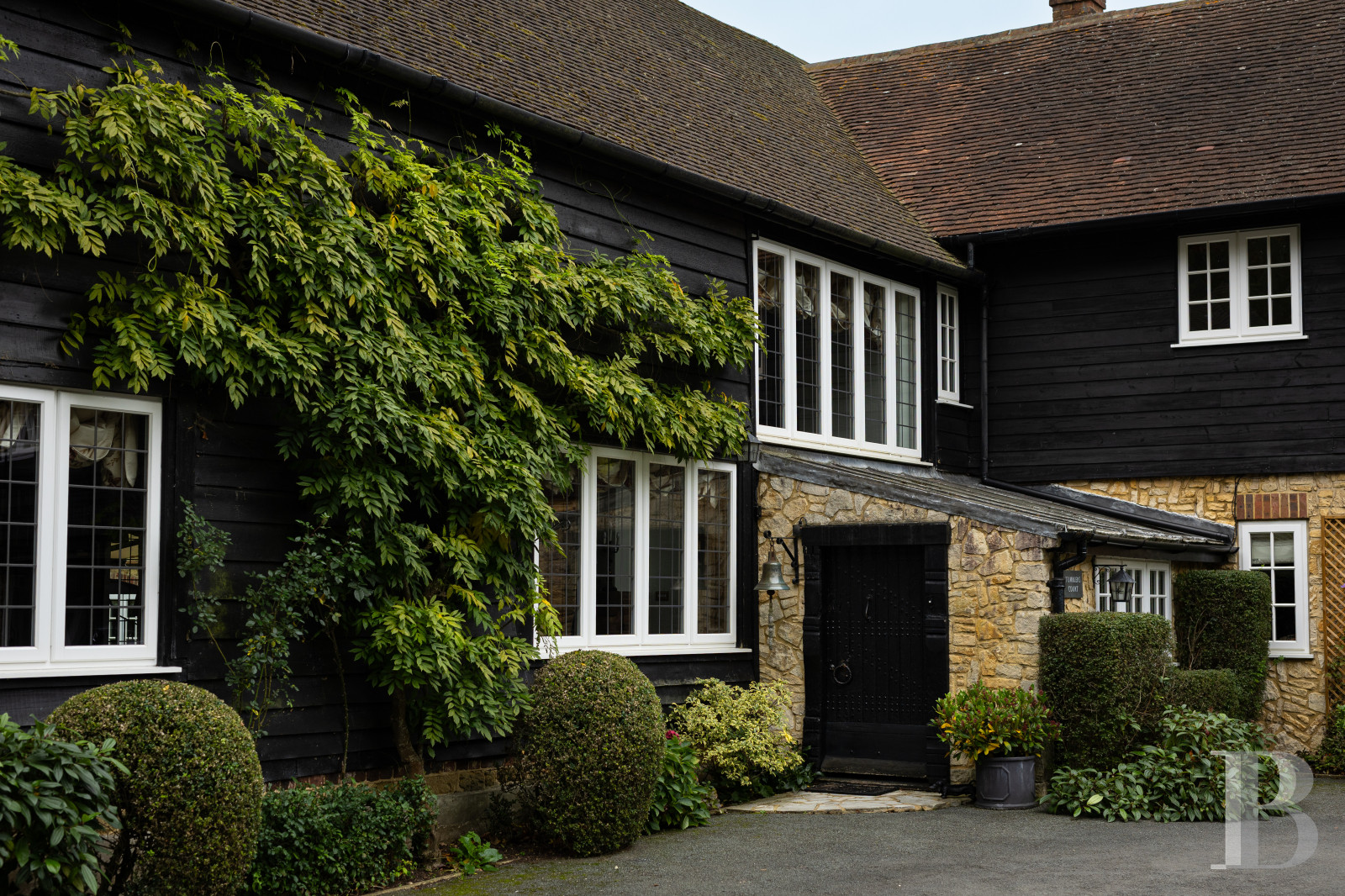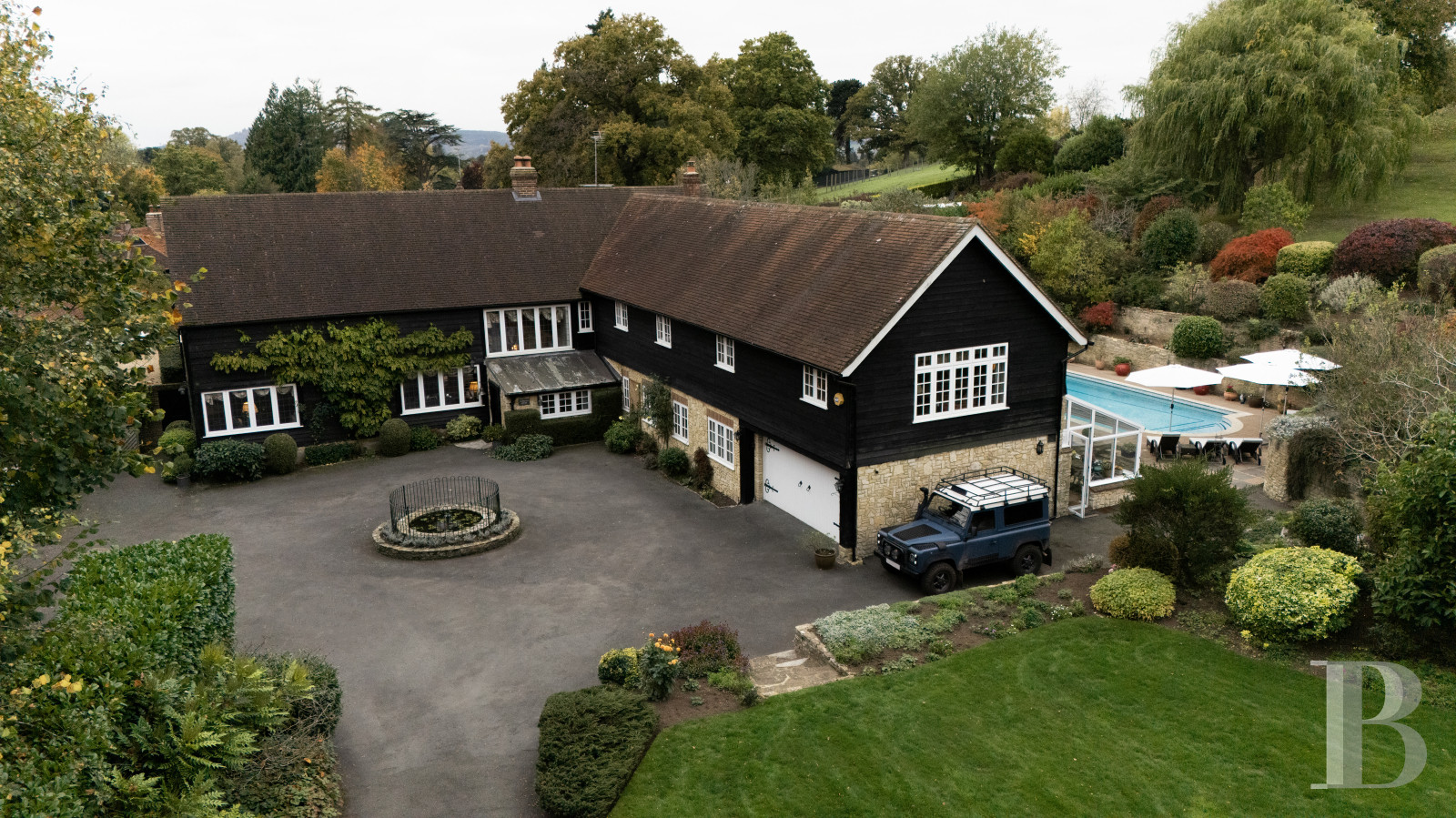 Les Surrey Hills ont cette façon d'absorber les propriétés qui leur ressemblent. Tumblers Court leur ressemble. Derrière un double portail, une allée conduit à une cour centrale où un bassin et une fontaine marquent le seuil entre le monde et autre chose. La maison, dont les origines remontent au début du 19e s., a traversé le temps sans perdre le fil : le Great Room à double hauteur, les pièces de réception ouvertes sur les jardins, la cuisine aux portes-fenêtres tournées vers les terrasses est et ouest disent une époque qui savait encore construire pour durer. Cinq chambres, un cottage indépendant, une piscine, un court de tennis, quelque 1 ha de jardins matures, de potager et de pelouses : l'ensemble a atteint cet équilibre que seuls les lieux vraiment habités finissent par trouver.