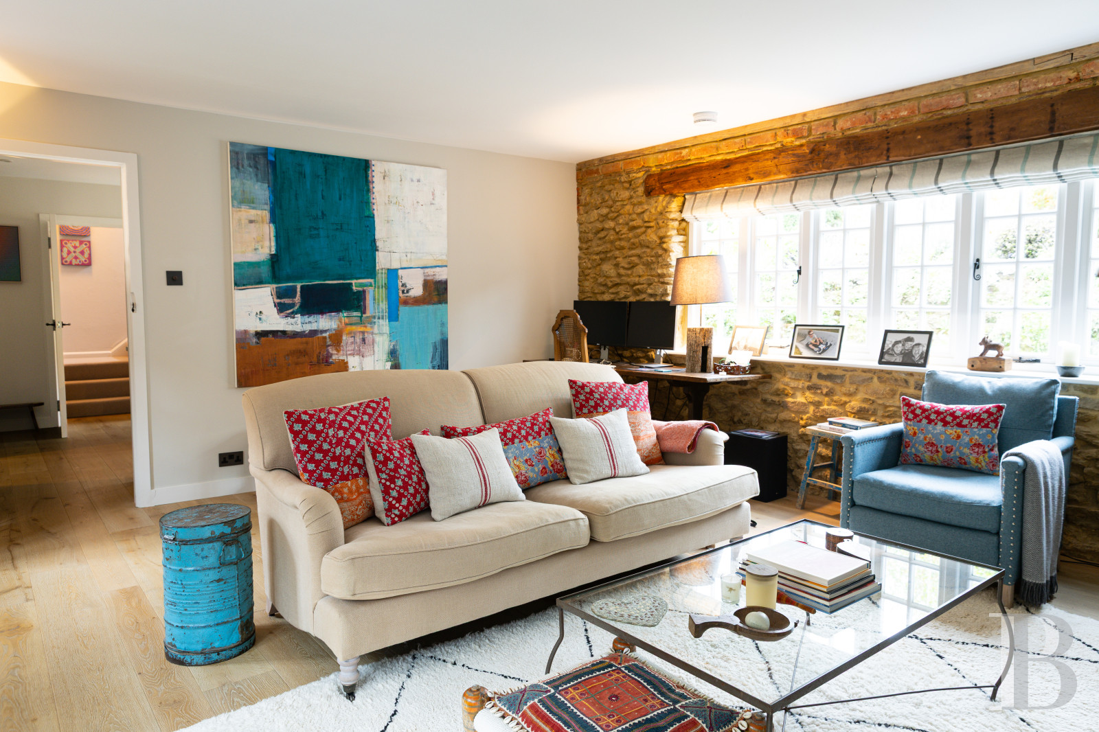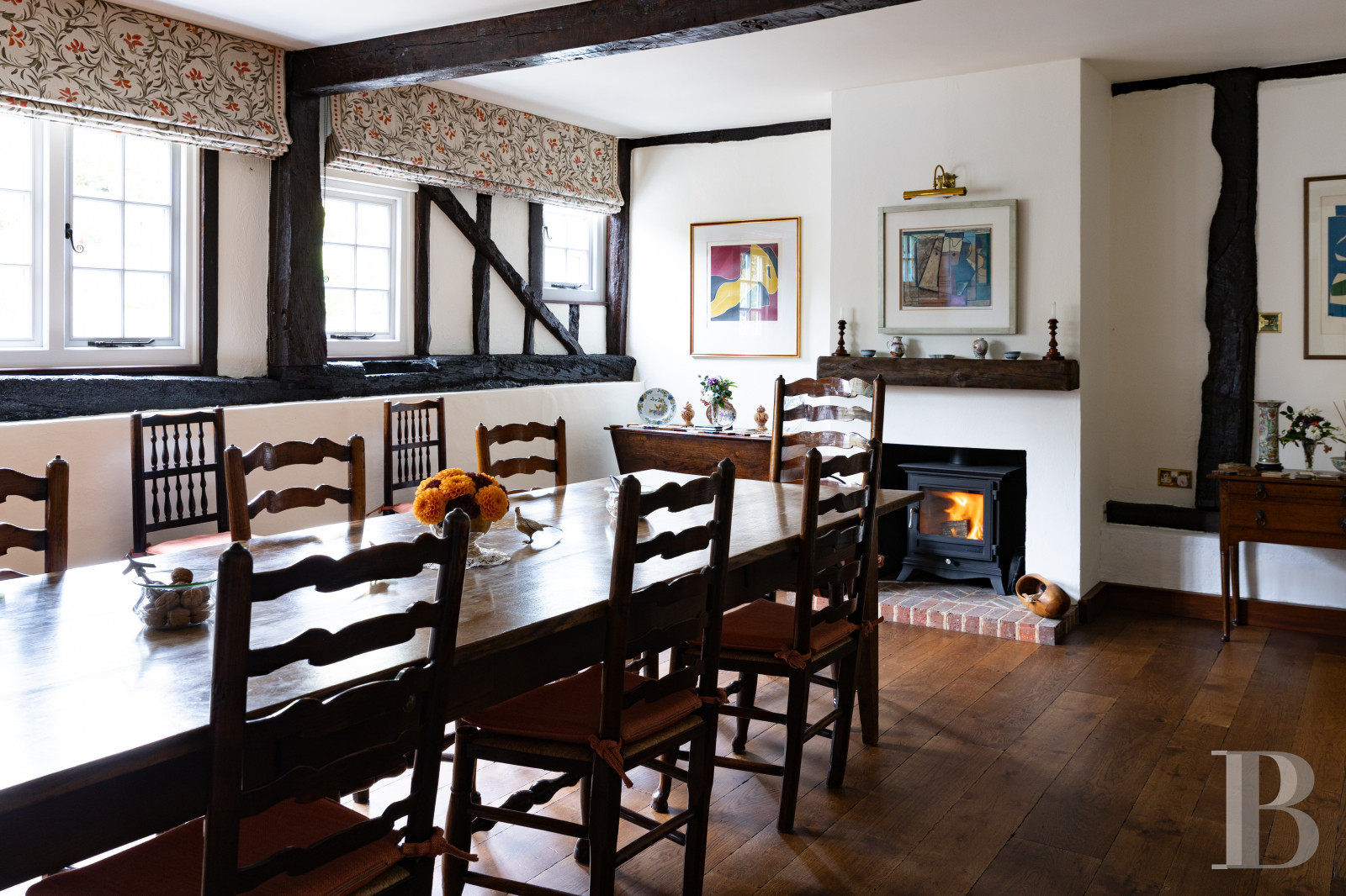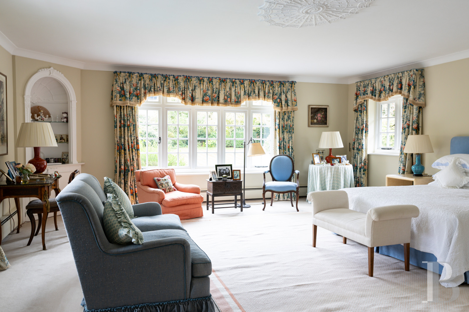 Les Surrey Hills ont cette façon d'absorber les propriétés qui leur ressemblent. Tumblers Court leur ressemble. Derrière un double portail, une allée conduit à une cour centrale où un bassin et une fontaine marquent le seuil entre le monde et autre chose. La maison, dont les origines remontent au début du 19e s., a traversé le temps sans perdre le fil : le Great Room à double hauteur, les pièces de réception ouvertes sur les jardins, la cuisine aux portes-fenêtres tournées vers les terrasses est et ouest disent une époque qui savait encore construire pour durer. Cinq chambres, un cottage indépendant, une piscine, un court de tennis, quelque 1 ha de jardins matures, de potager et de pelouses : l'ensemble a atteint cet équilibre que seuls les lieux vraiment habités finissent par trouver.
