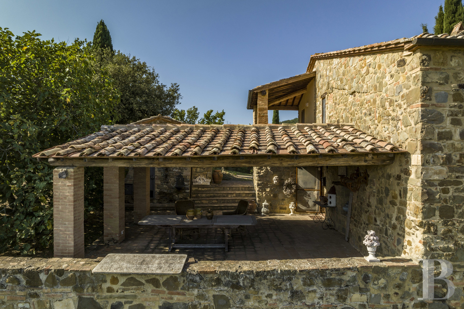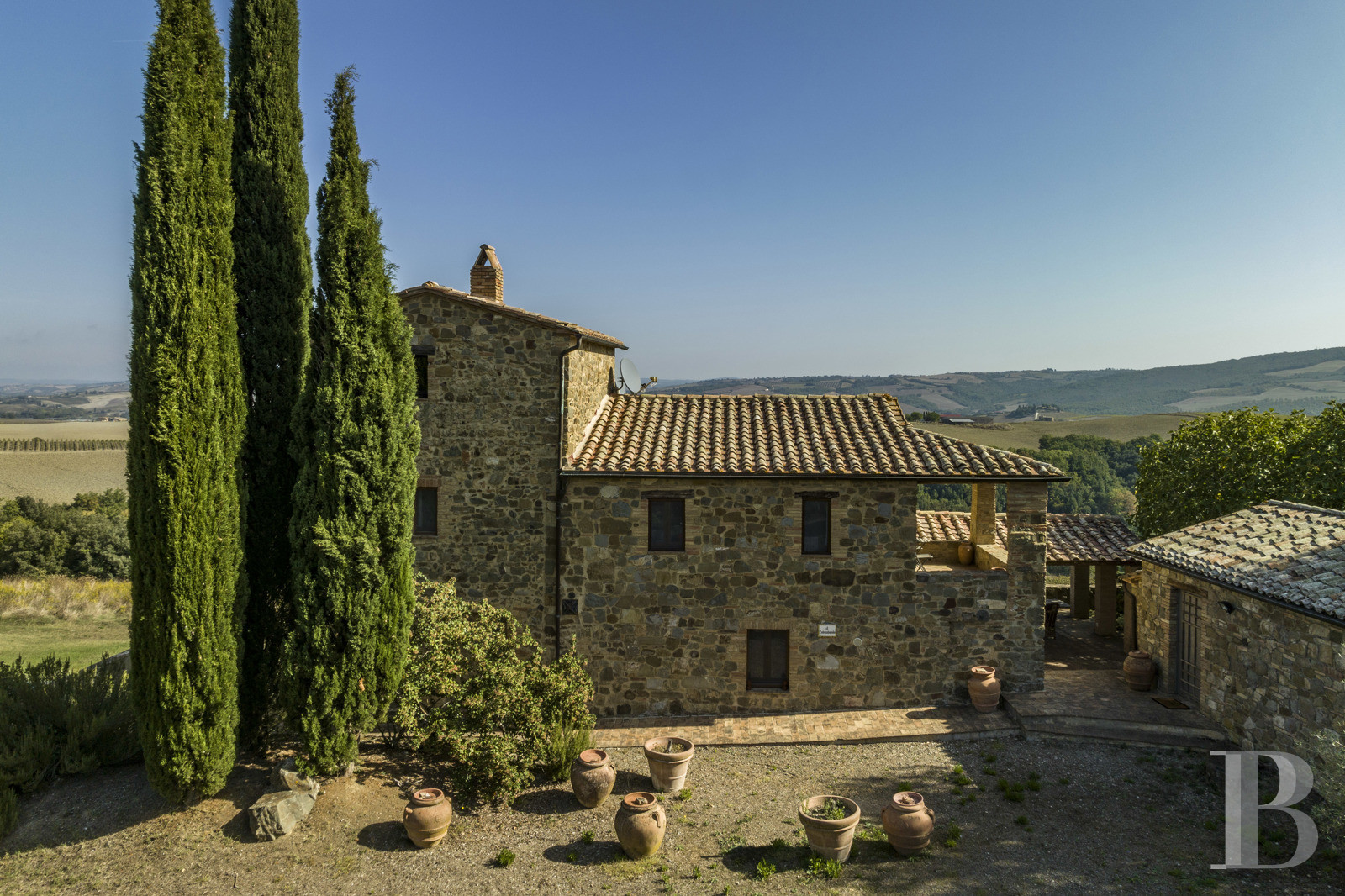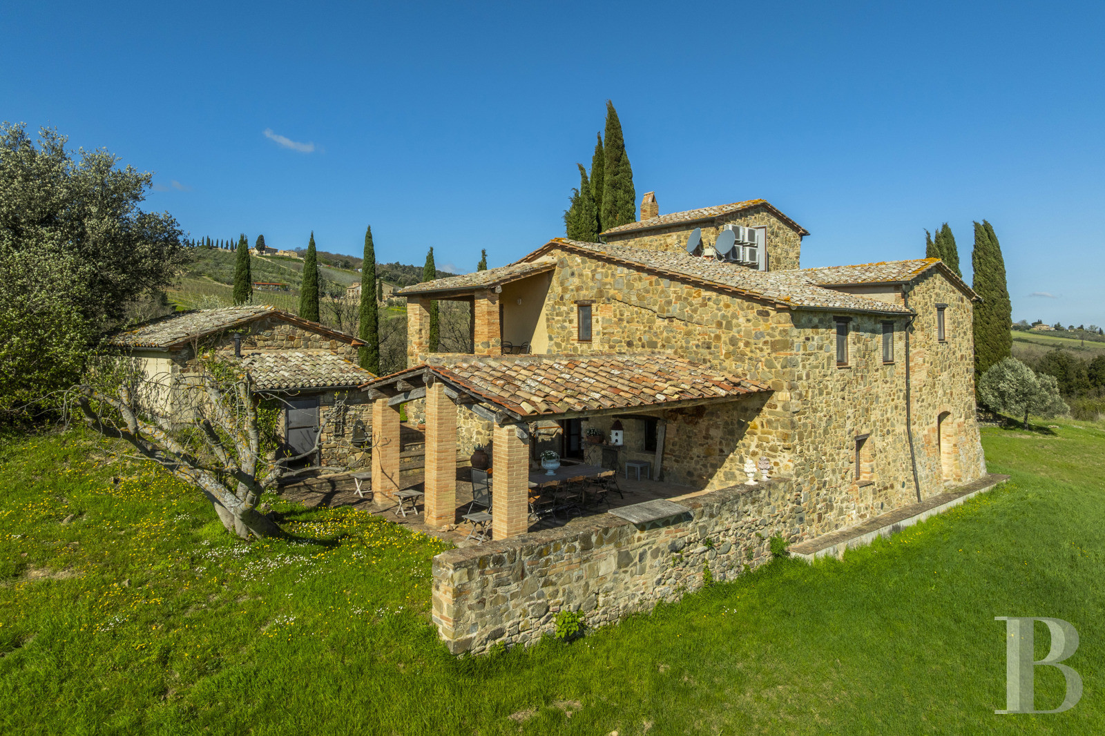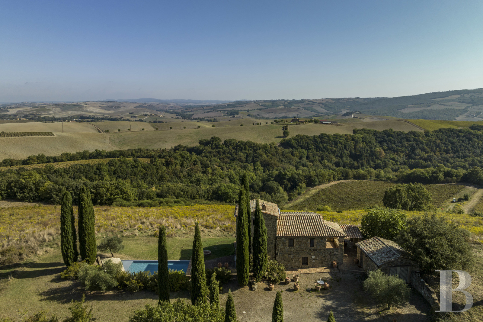 une maison en pierre face à la Val d'Orcia et ses vignobles