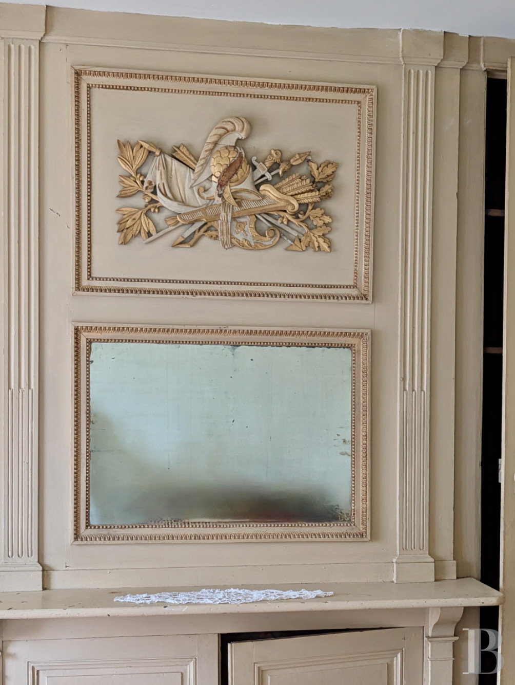 Le palier dallé de pierre, avec vue sur le jardin, distribue harmonieusement de part et d’autre trois chambres parquetées de chêne. Celles-ci possèdent toutes un décor différent, tour à tour pourvues de boiseries d’ornement, de placards, comportant soit une cheminée, une niche pour le poêle ou encore une alcôve. Aux extrémités de l’étage sont installés une salle de bain et un cabinet de toilette accessibles des deux côtés ainsi que deux débarras et leur escalier de service respectif menant aux greniers.Un petit salon lumineux au-dessus de l’entrée fait le lien entre les deux parties.