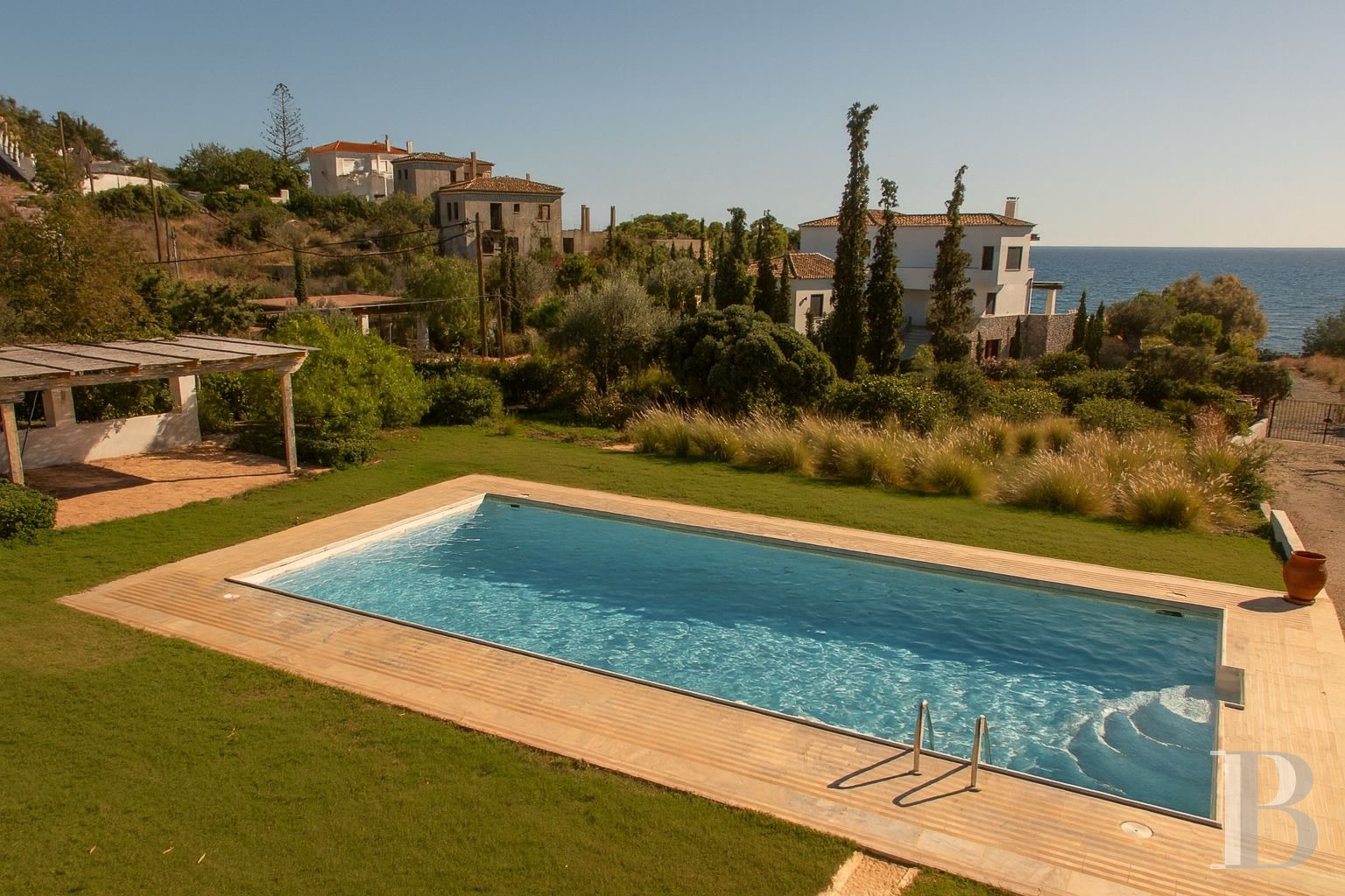 À l'image de l'environnement argolique où elle s'inscrit, une propriété qui constitue un cadre idéal pour apprécier la combinaison d'une mer cristalline accessible sans dénivelé, d'un jardin méditerranéen irrigué par puits privé et d'une architecture traditionnelle en pierre naturelle préservée. Protégée par un terrain de 1 500 m² planté d'oliviers, la maison principale et le studio indépendant peuvent être habités par une famille étendue qui aura à cœur d'offrir indépendance et autonomie à ses membres, ou servir de résidence de location saisonnière, pour tout ou partie. La restauration a donné une cohérence esthétique à ces volumes à l'architecture méditerranéenne sobre, typique de la région, qui met en valeur la beauté de la pierre et les matériaux naturels. Les dimensions du terrain avec son jardin soigné, ses oliviers séculaires et sa piscine alimentable en eau de mer, permettent aussi d'envisager des usages multiples : vie familiale permanente, résidence secondaire, ou exploitation touristique haut de gamme. La position à dix minutes d'Ermioni, deux heures et demie d'Athènes, et la proximité de Porto Cheli, Spetses et Hydra constituent des atouts supplémentaires dans un territoire du Péloponnèse qui conjugue tranquillité résidentielle et accessibilité maritime vers les îles du golfe Saronique.