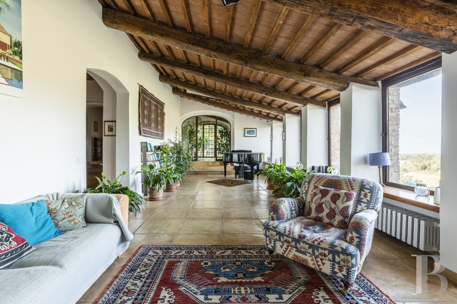 Un ancien casale toscan de pierre et de caractère, comme posé au cœur d'un paysage agricole classé à UNESCO. Ses volumes authentiques en pierre locale, répartis entre demeure principale et tour abritant logements indépendants, s'inscrivent dans environ 3 hectares où vignoble, oliveraie et champs composent un domaine productif face aux collines ondulantes du Val d'Orcia. L'agencement des espaces, fluide entre résidence familiale et appartements d'hôtes autonomes, forme un lieu de vie modulable, propice aussi bien à l'occupation familiale étendue qu'à une activité d'hospitalité de charme tirant parti du patrimoine architectural et du paysage toscan environnant. À l'abri dans la quiétude d'une campagne préservée, l'adresse n'est qu'à quelques minutes des bourgs historiques de Pienza et Montepulciano, permettant de concilier tranquillité rurale et proximité des services, commerces et richesse culturelle toscane sans sentiment d'isolement.