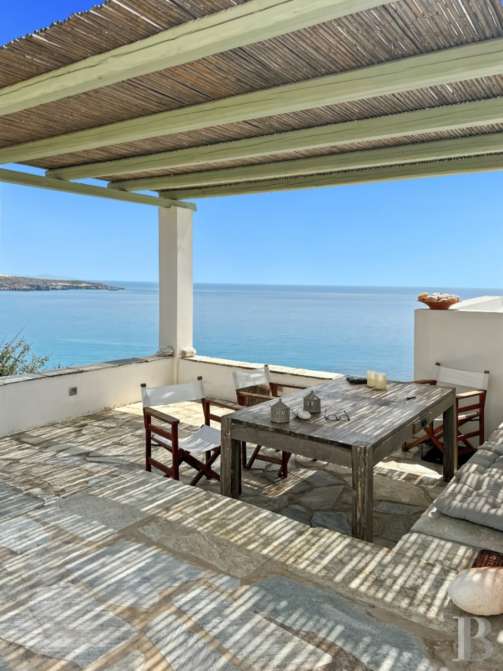 une maison cycladique avec maison d'hôtes indépendante sur terrain arboré