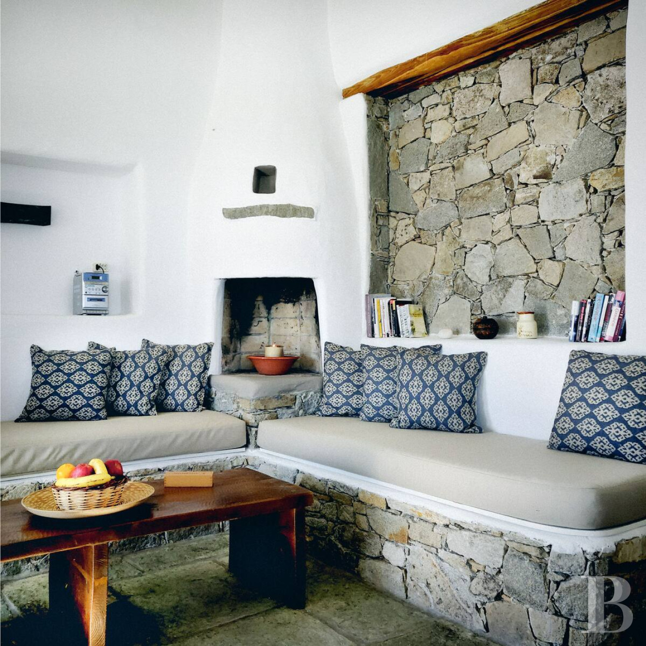 Un refuge cycladique : la formule se justifie lorsque authenticité architecturale, perspectives maritimes et tranquillité se donnent rendez-vous sur les hauteurs sculptées de Kolymbithres. Ici, dominant la baie de Naoussa, 133 m² répartis sur deux niveaux et 2 800 m² de terrain préservé composent un ensemble où vie familiale et accueil d'invités trouvent leur équilibre naturel. La position dominante sur les formations rocheuses de Kolymbithres, les plages accessibles en quelques minutes à pied, et le village animé de Naoussa à sept minutes en voiture composent un cadre privilégié. Un lieu qui se prête aussi bien à résidence permanente qu'à villégiature saisonnière, dans un territoire de Paros qui maintient authenticité cycladique et paysages côtiers préservés, où les rochers sculptés par les vagues dessinent depuis des siècles l'une des côtes les plus photographiées des Cyclades.
