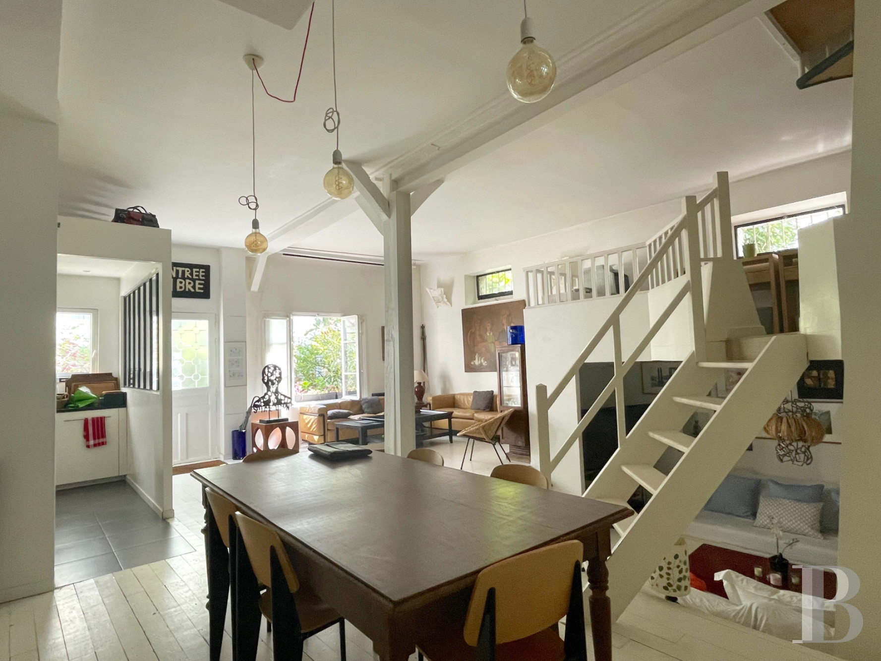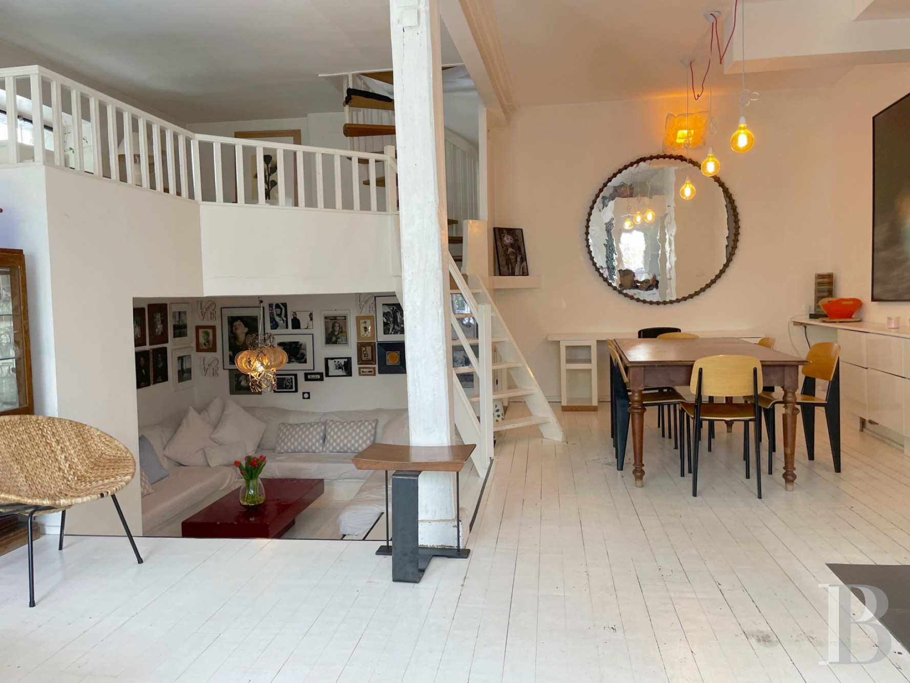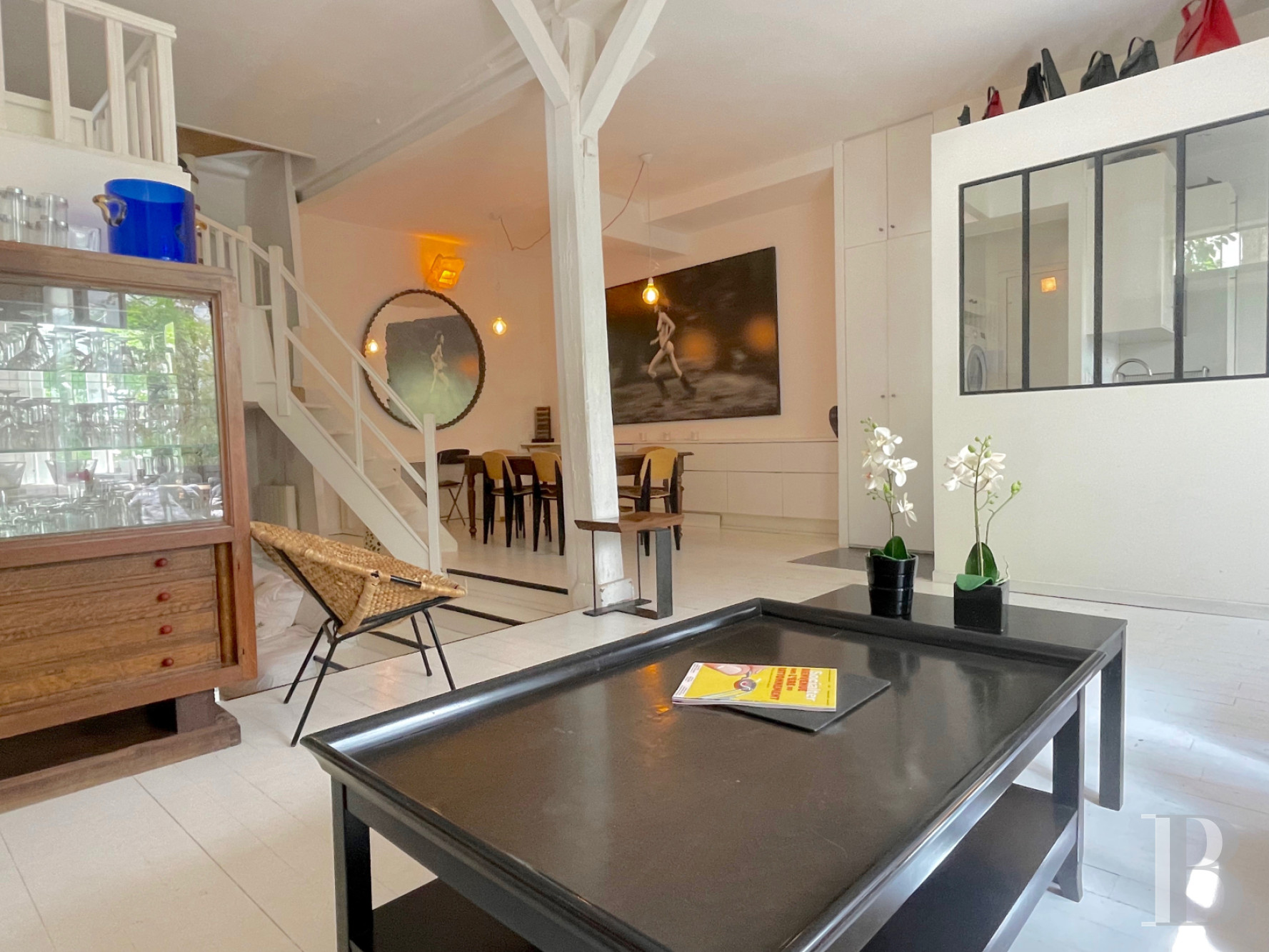Un triplex, entre maison et appartement, avec des espaces fluides et ouverts, marqué de lignes immaculées. Le bois, disséminé ici et là, agit comme une discrète touche de couleur et met davantage en valeur la blancheur éclatante des murs tout en y insufflant une chaleur aussi surprenante que réjouissante. Les lieux sont tout en sobriété et en modernité. Chacun pourra y préserver son intimité. Le tout aux Batignolles, dans une cour fleurie, ainsi qu’un morceau de campagne particulièrement convivial.