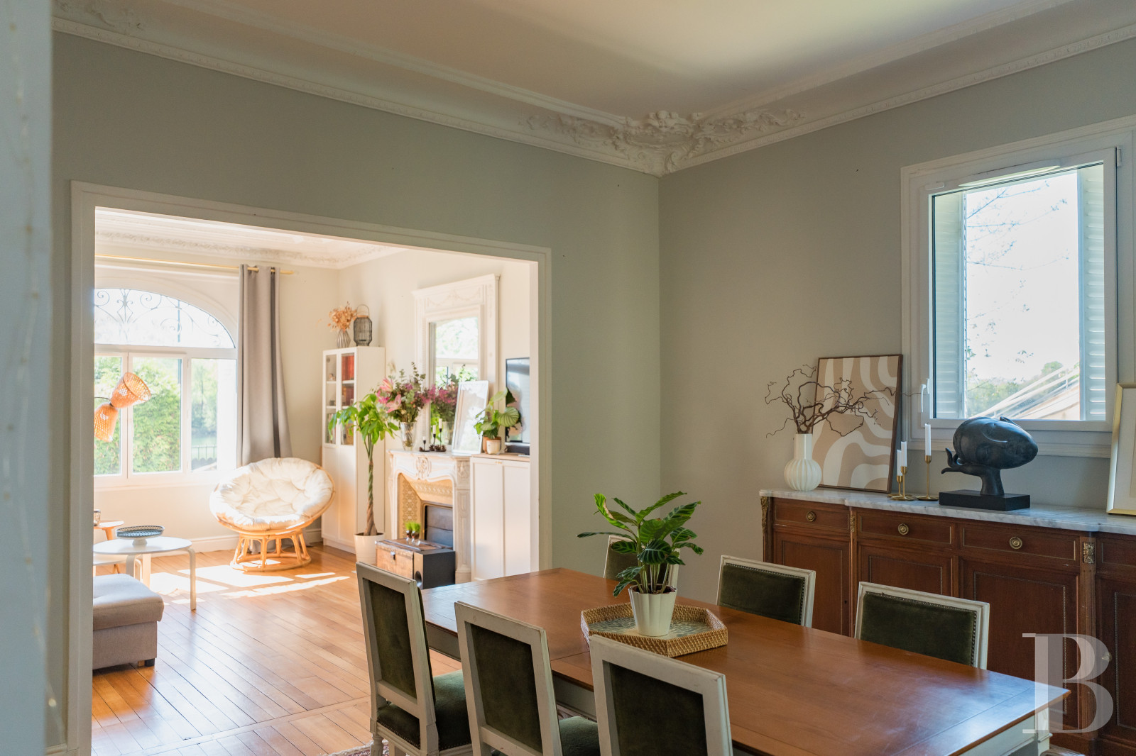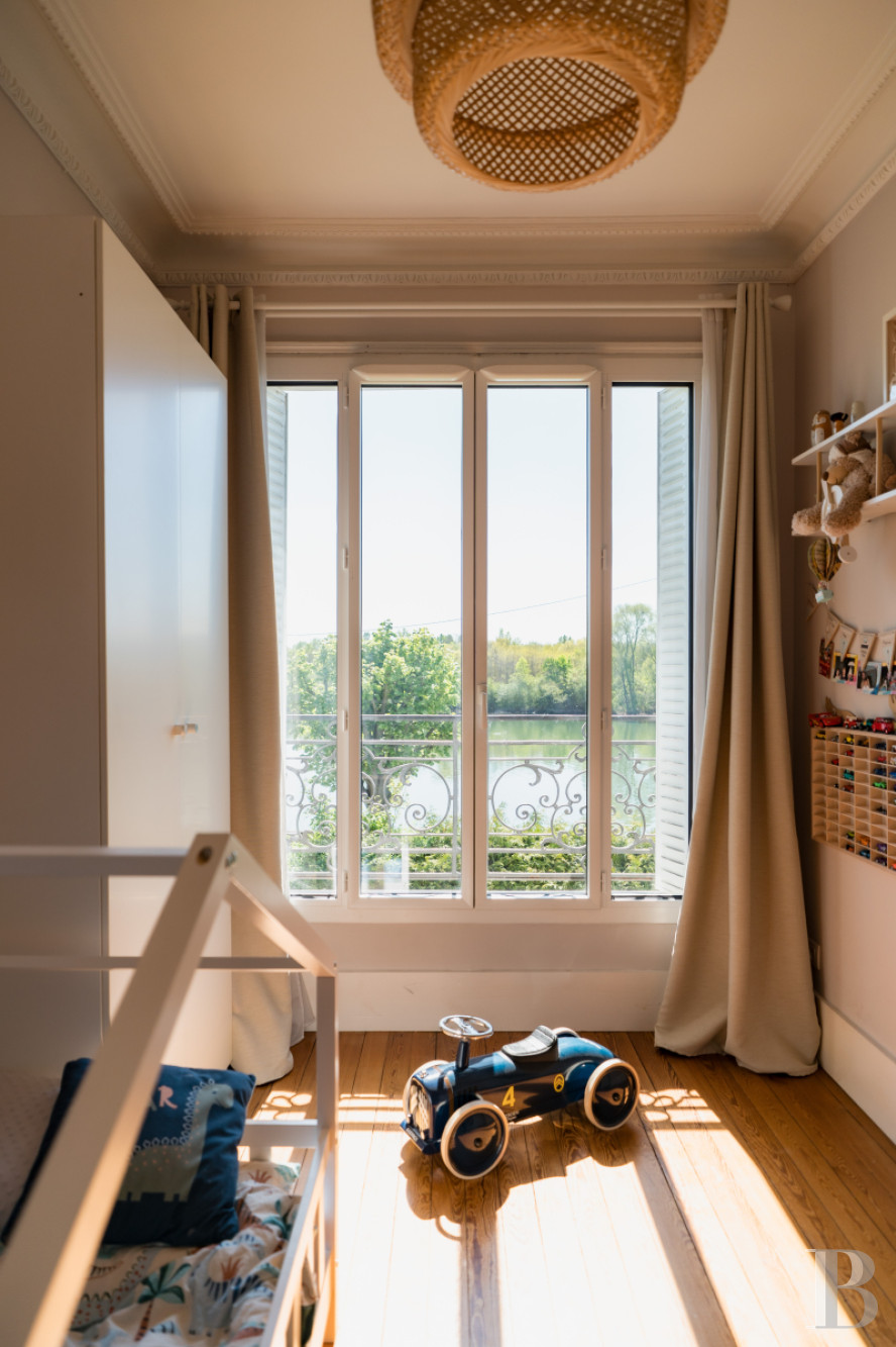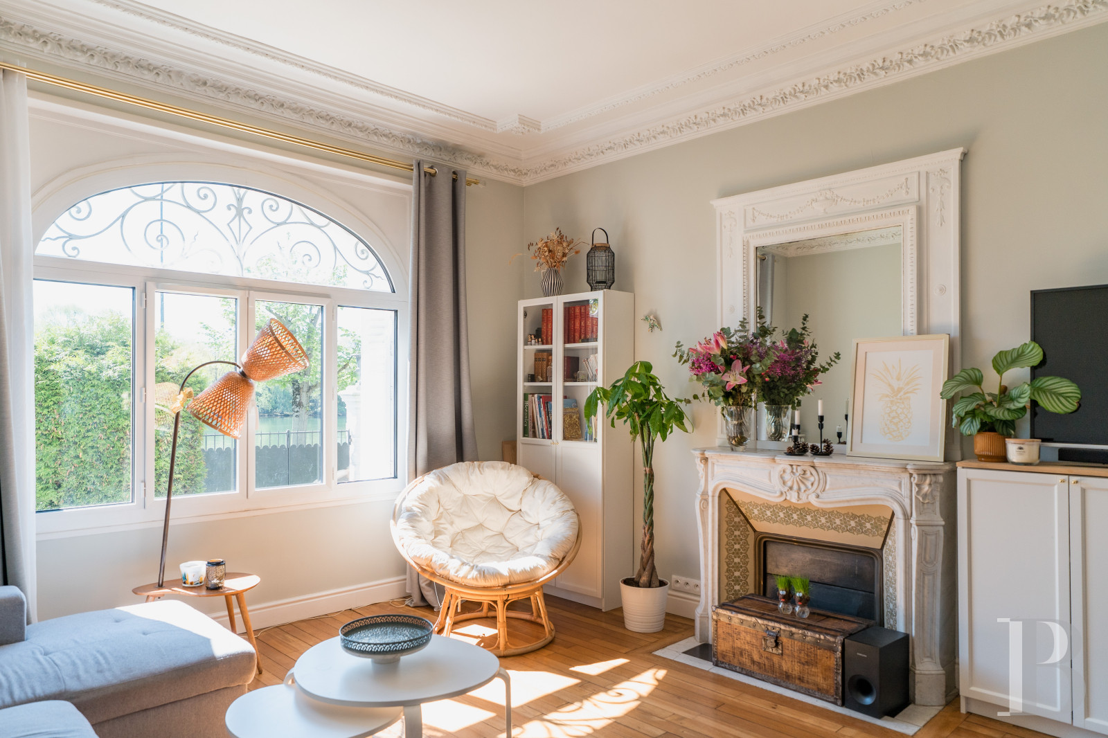 Une villa de la fin du 19e s. récemment restaurée dans le respect de ses décors d’origine. Ses fenêtres surplombent la Seine, tandis que le regard se perd dans les rives naturelles de l’île Brune.