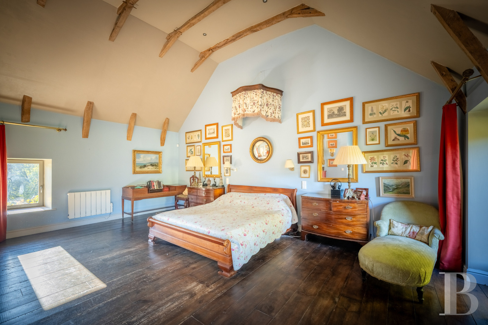 L'escalier adossé au mur sud de la salle à manger-cuisine donne accès aux espaces de nuit et à plusieurs salles d'eau. Un palier distribue à l'est et au nord-est deux chambres, la deuxième comporte un placard dissimulé dans son mur ouest. Au nord, une salle de bains est équipée d'un lavabo, d'une baignoire de toilettes et d'une VMC. Au sud, une porte ouvre sur une troisième chambre de grande hauteur sous plafond qui rappelle la construction initiale et laisse entrevoir les poutres doublées d'isolation en rampant. La chambre est associée à une garde-robe et à une salle d'eau avec douche, double lavabo et toilettes. À l'ouest, une large baie vitrée à quatre vantaux ouvre vers une terrasse privative de près de 22 m² et recouverte d'un dallage de pierre.