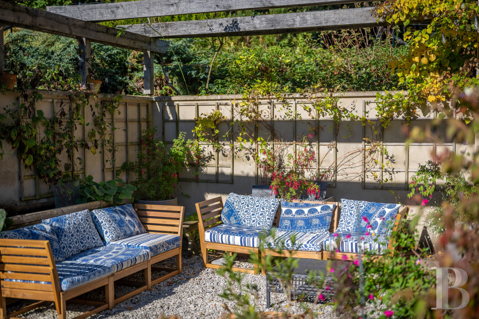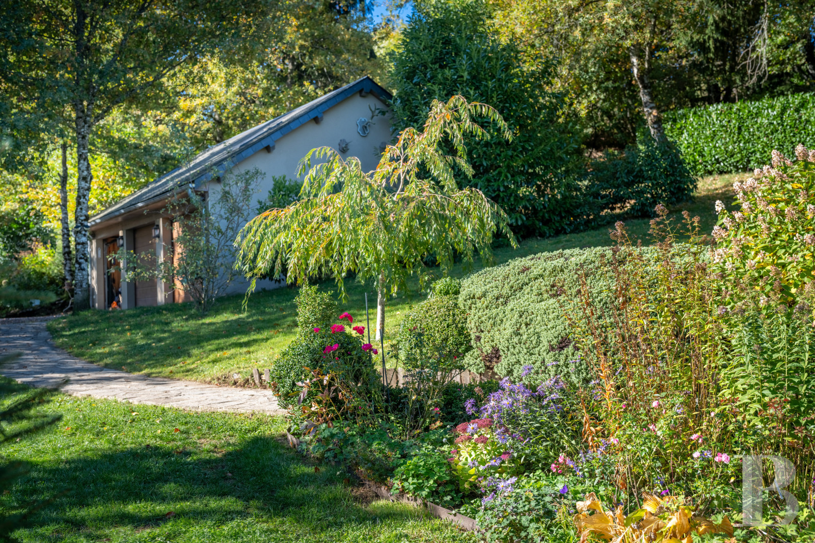 Accessible directement depuis l’entrée de la propriété, le bâtiment de construction récente comprend des éclairages intérieurs et extérieurs, ainsi que des prises de courant adaptées aux travaux de bricolage. D’une surface d’environ 60 m², il se compose, au rez-de-chaussée, de trois espaces desservis en façade est par trois larges portes de garage basculantes à panneaux pleins : au sud, un atelier de bricolage ; au centre, un espace de stockage pour machines et outils ; au nord, une place de stationnement prolongée d’un espace de stockage pour le bois de chauffe. À l’étage, éclairé par fenêtres de toit oscillo-battantes, un atelier, séparé par une cloison de l’ensemble, est réservé au stockage. Ce niveau est accessible depuis l’intérieur au sud et au nord par des échelles escamotables.Les terrains