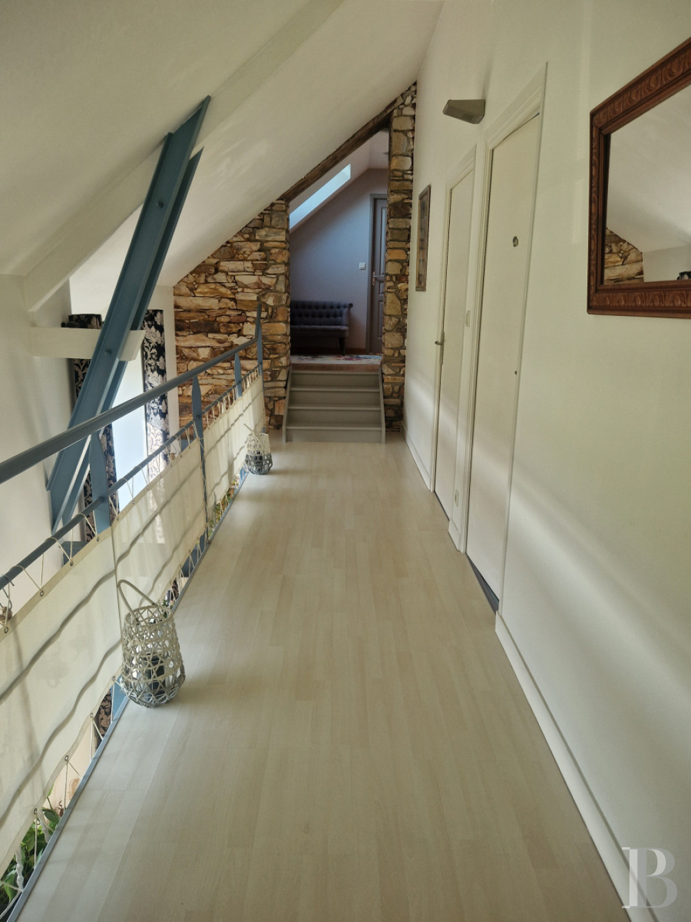 Il est accessible par un escalier en bois ancien à double volée. Un palier mène à un dégagement et à une salle de bains aménagée, ainsi qu'à deux chambres. Les sols sont parquetés.