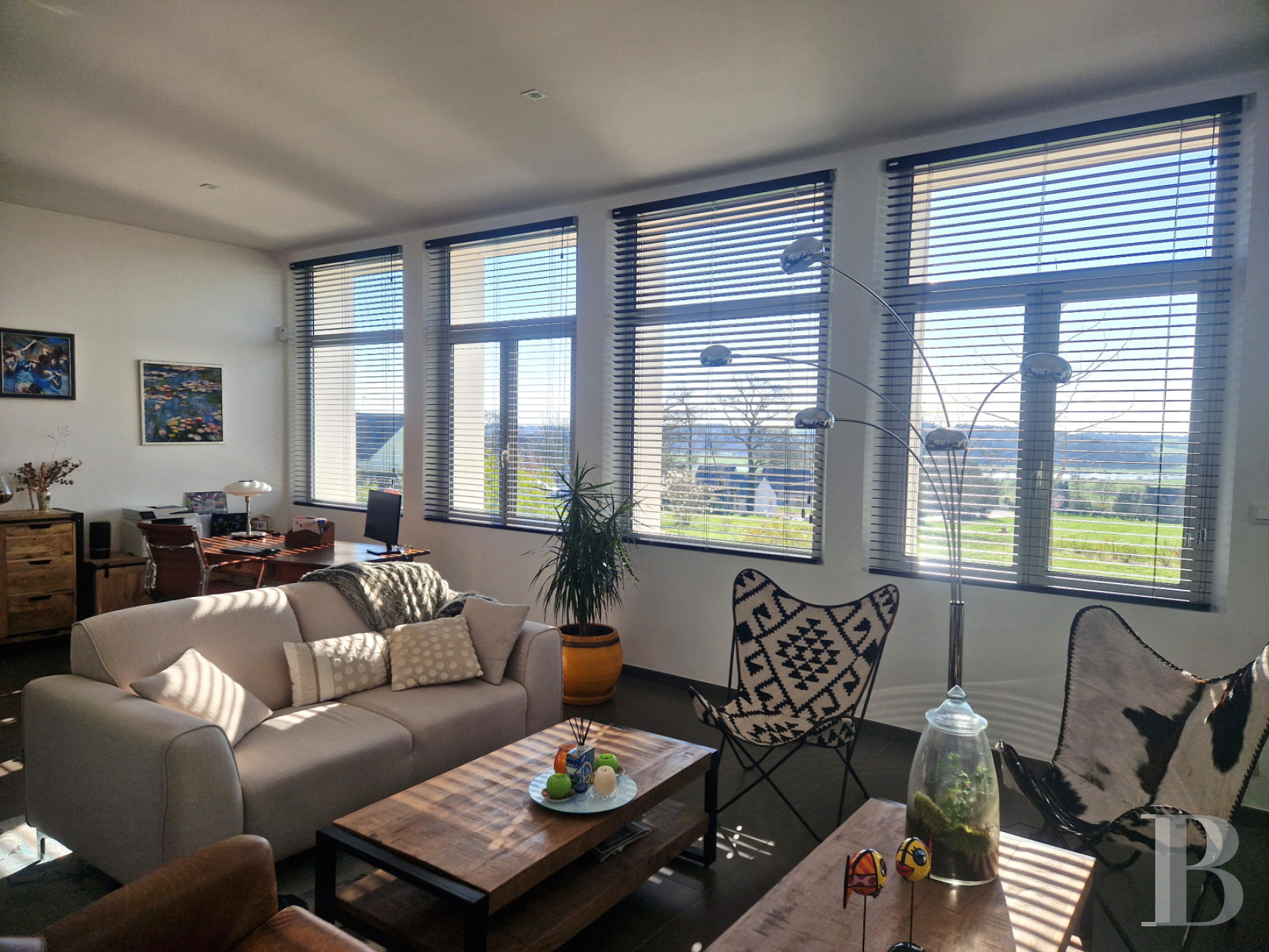 En Bretagne-sud, au surplomb d'une vallée fluviale du Morbihan, la maison est implantée à la sortie d’un village d’environ 1500 habitants, dans un environnement calme. Le panorama est constitué en grande partie de champs, d’alignements d’arbres, de marais et d’une rivière. L'adresse est à quelques minutes d’un bourg avec de nombreux commerces de proximité et à 15 min de Redon, qui concentre le reste des services. Le village lui-même compte une boulangerie. Depuis la gare de Redon, le train dessert Rennes, Quimper ou Paris. La voie rapide Nantes-Vannes se trouve également à 15 min. Bien qu’en retrait du littoral, la proximité d’un port de plaisance donne un accès rapide à la mer.