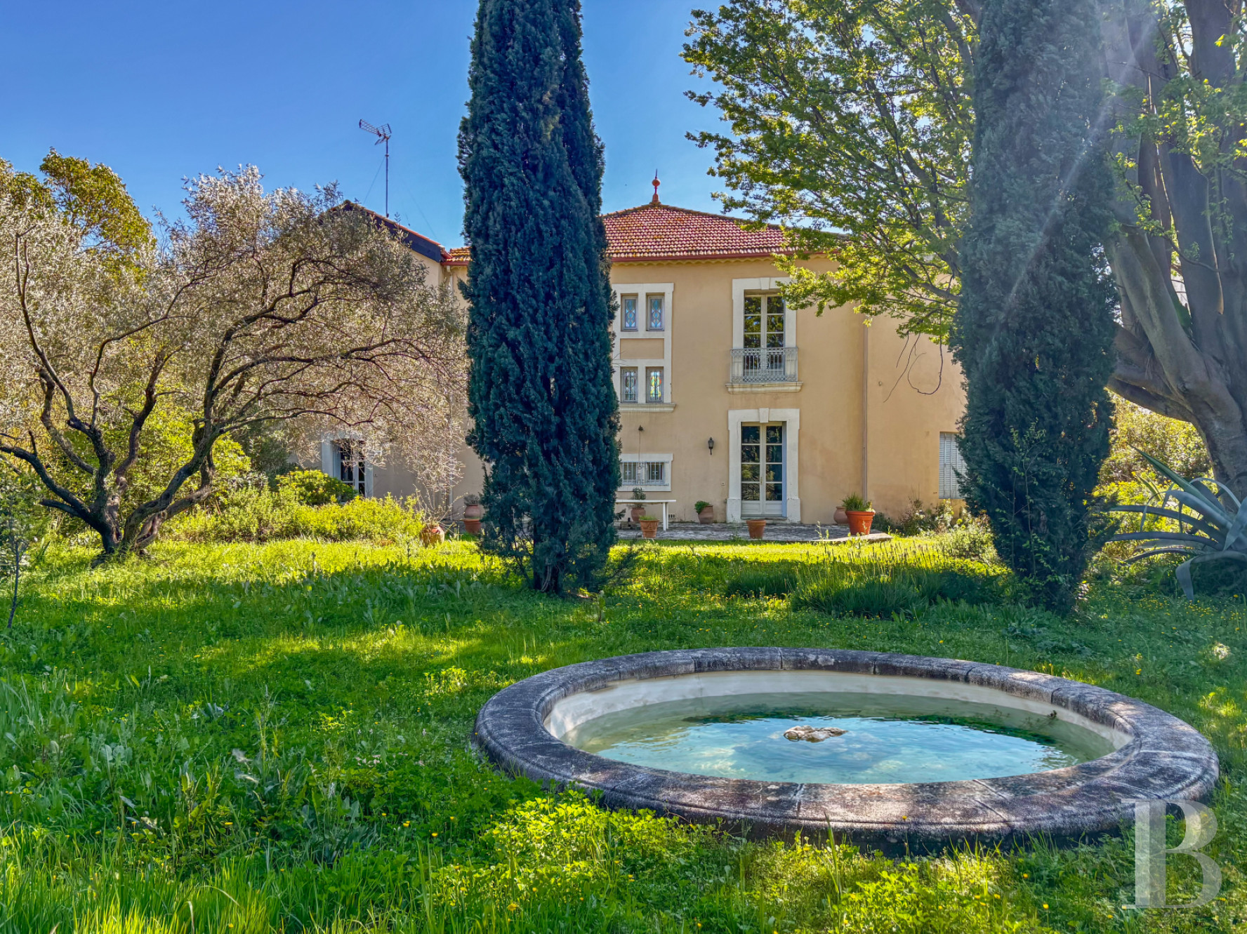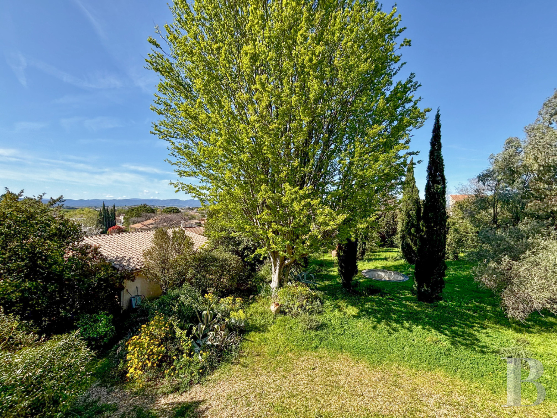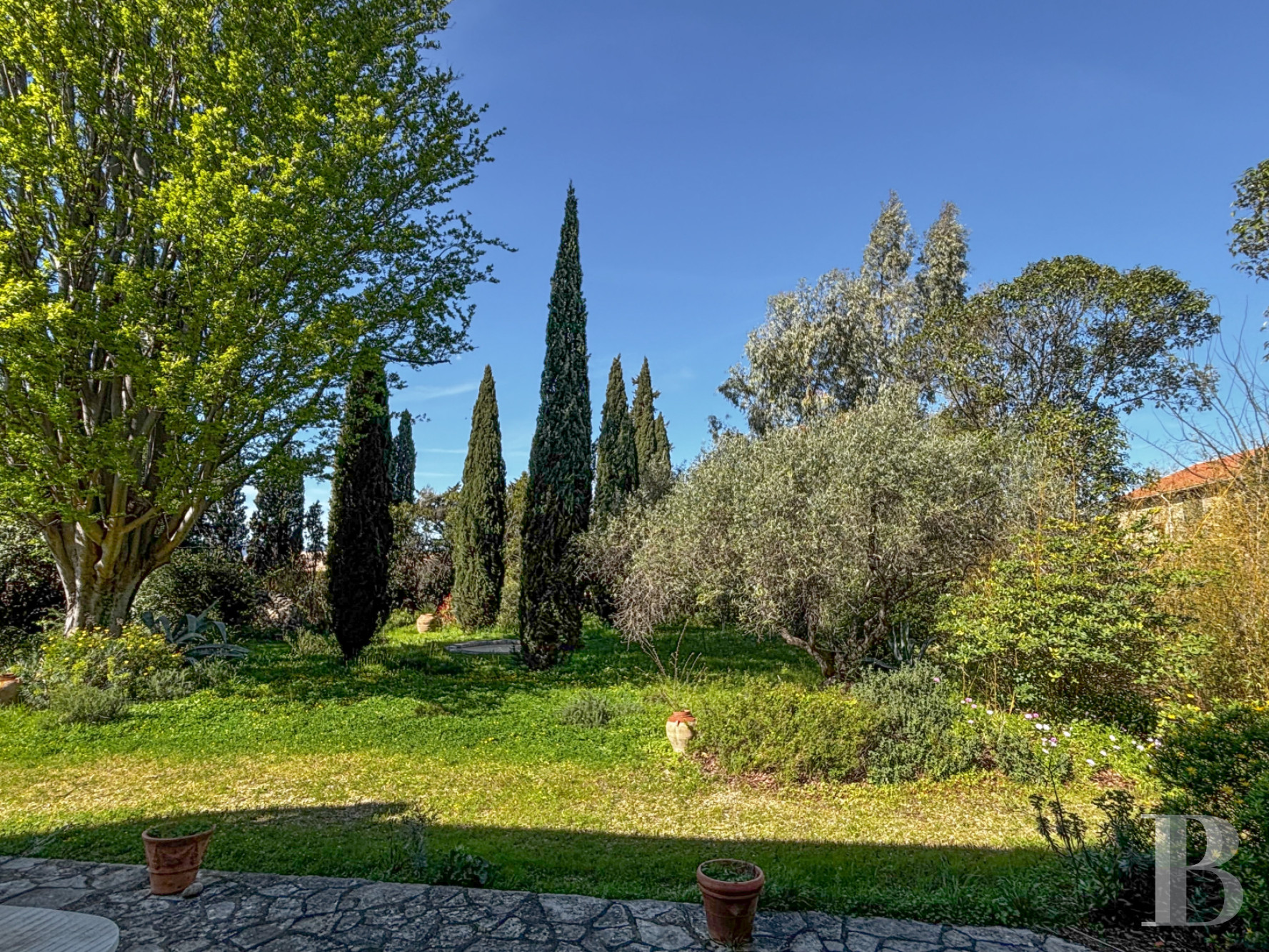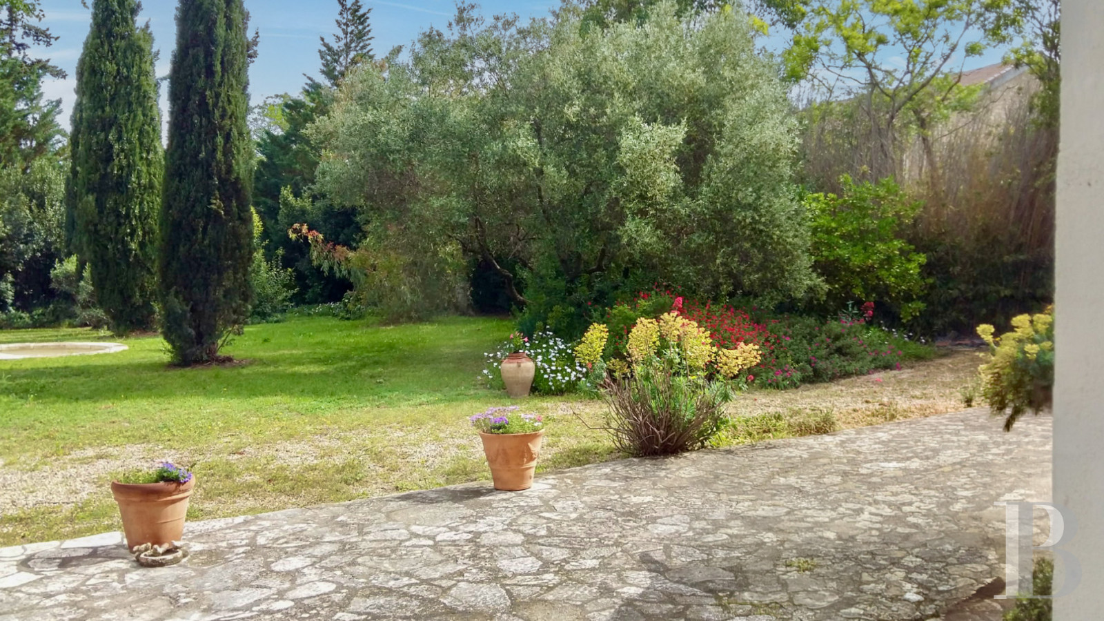 Vaste d’environ 1 800 m² et clos de haies, il met en valeur et agrémente la maison située à sa limite sud. La partie nord est ombragée par des arbres et arbustes d'essences méditerranéennes et une valse de cyprès. Une dense végétation, complétée ici ou là de bambous, qui préserve de la promiscuité comme une enceinte verdoyante. La maison est bordée sur les côtés et à l’arrière d’un dallage en pierre, de dimensions importantes au nord, constituant ainsi une spacieuse terrasse côté jardin. Elle permet d'installer une table de repas à l'ombre de la haie qui la jouxte et des arbres les plus proches. Un bassin d’agrément rond trône au milieu des cyprès. Enfin, le possible creusement d'une piscine parachèverait le petit parc, voué à la détente.Ce que nous en pensons