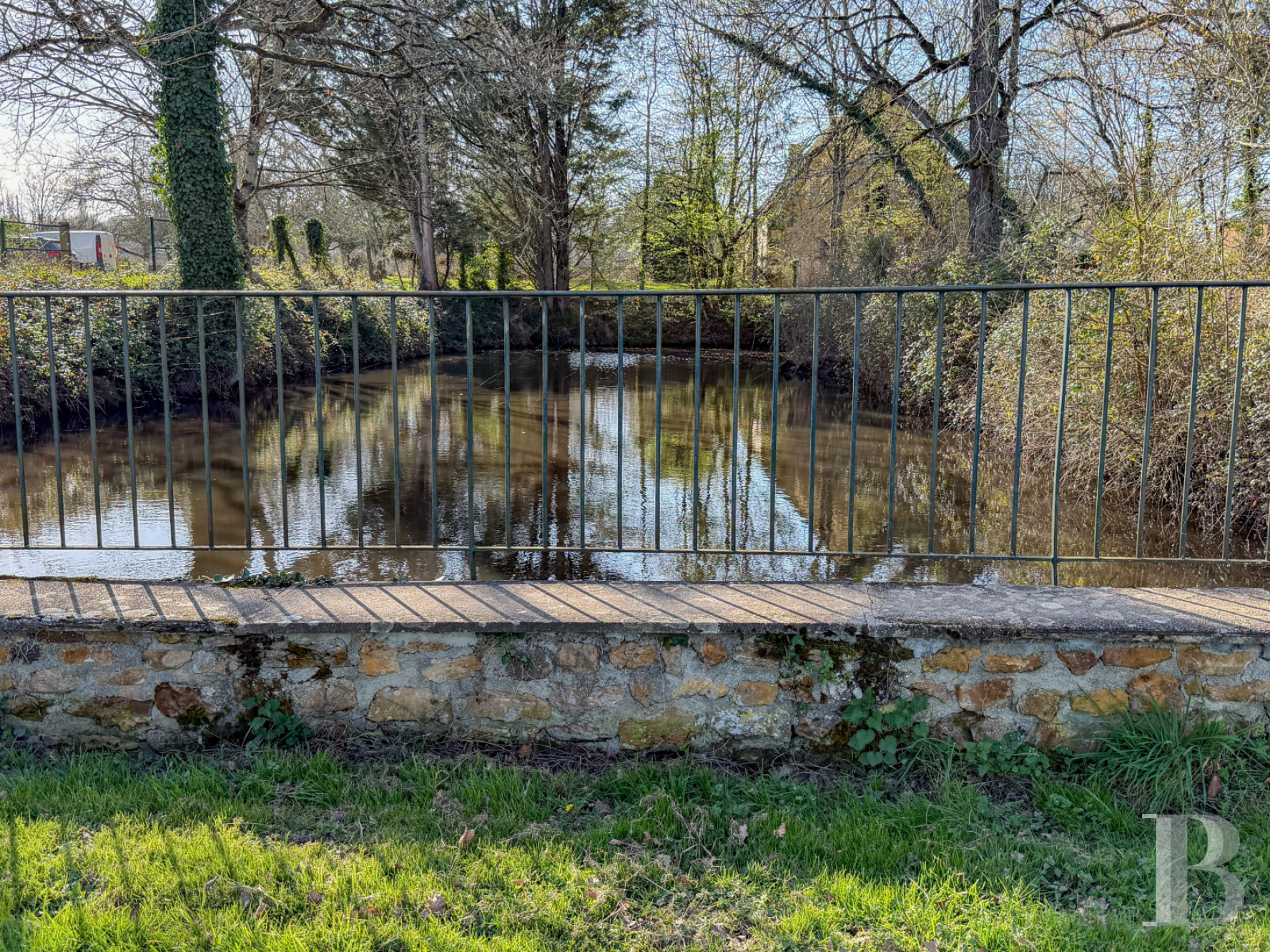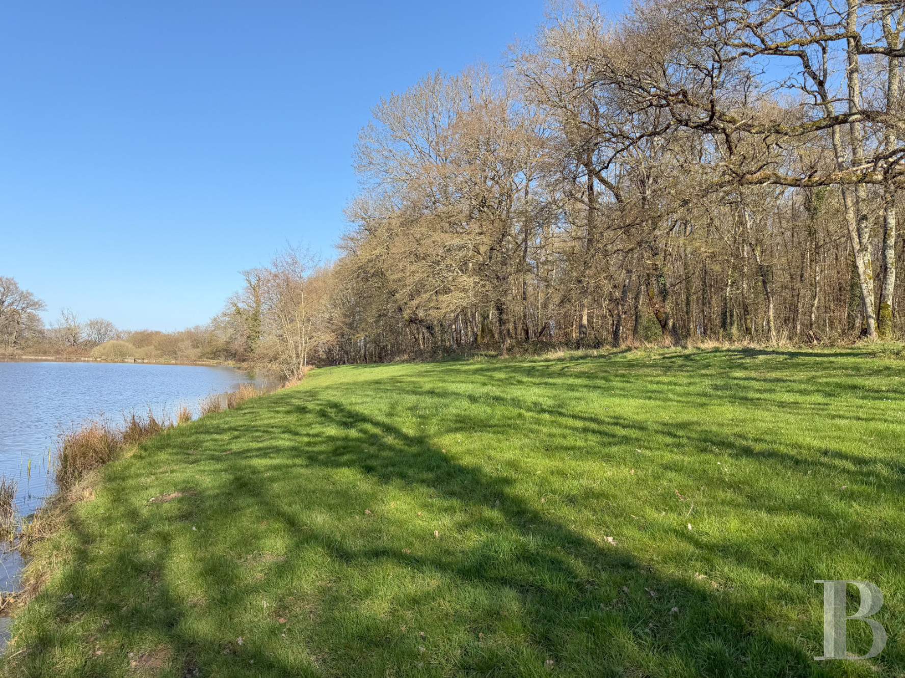 Autour des bâtiments, de vastes prairies composent l’essentiel du paysage et ouvrent de larges perspectives sur la campagne environnante. Face au logis, le bois est accessible par une allée cavalière. Un étang de quelque 6 680 m² s'étend à sa lisière. Enfin, un court de tennis est aménagé dans la prairie principale de la propriété.Ce que nous en pensons