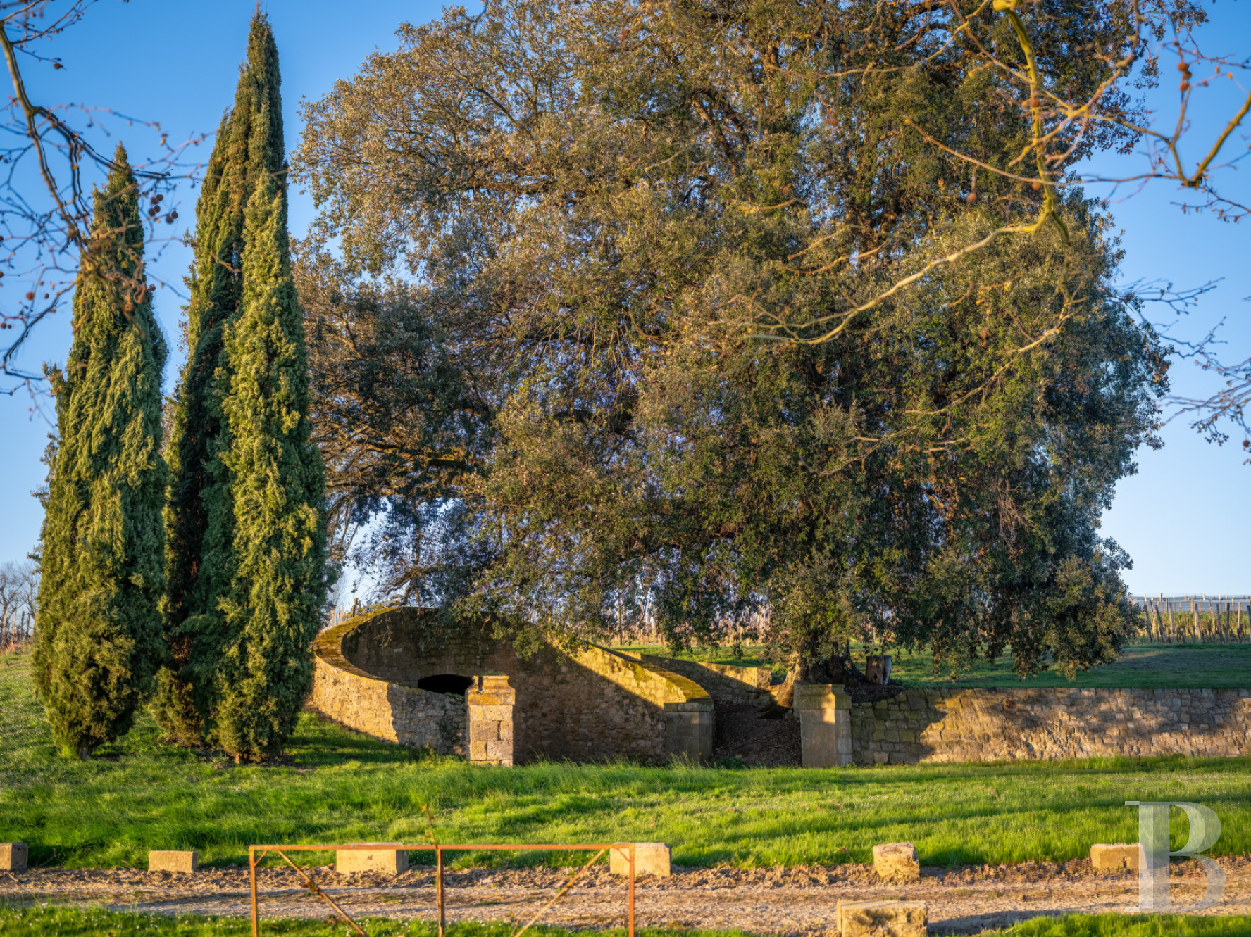 Sur un terrain de plus de 8 ha dont 3,5 ha de vignes, pour parti clos de murs en pierre, le château, les dépendances et la maison d'amis, se dressent dans le parc d'agrément planté d'arbres matures remarquables. Une piscine préservée de tout vis-à-vis a été créée récemment dans le jardin. Au nord du château et en contre-bas d'une allée bordée par un mur en pierre de soutènement, des daims paissent paisiblement dans un enclos édifié sur mesure. Les parcelles de vignes s'étendent sur un plan quelque peu surélevé, à l'écart, au-dessus d'une ancienne source. Un puits trône dans la cour du château.Ce que nous en pensons