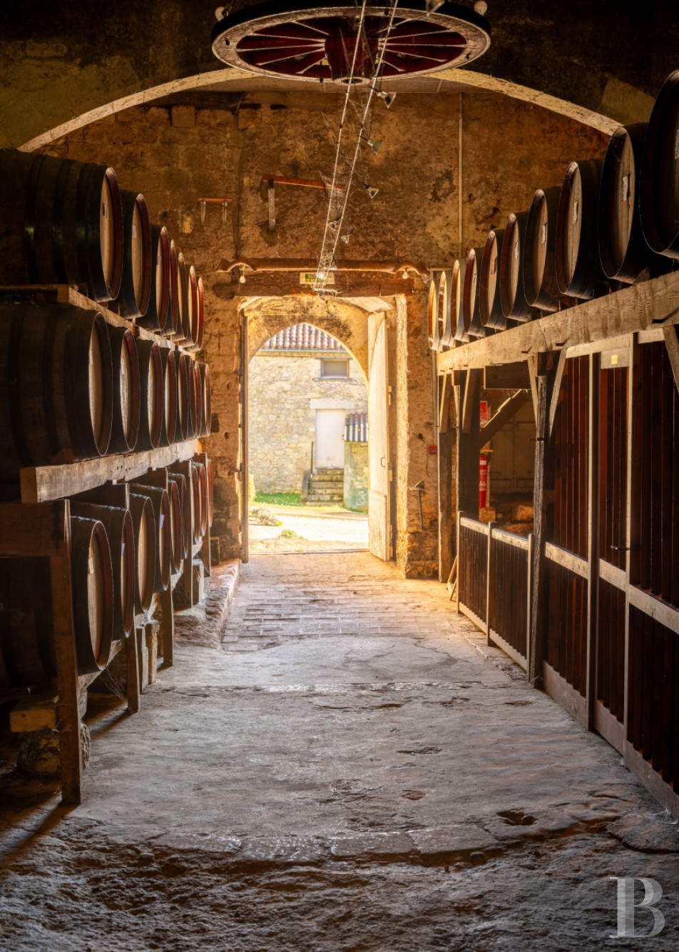 Les dépendances principales occupent les deux ailes du château. L'une, au nord, est dédiée aux espaces d'accueil et de boutique en rez-de-chaussée, l'autre, au sud du château, dans le prolongement de l'église, comprend les communs, élevés de deux niveaux sous toiture. Ils se composent d'ateliers, d'espaces de stockage et d'un garage. L'aile nord comprend, au rez-de-chaussée, un vaste chai et de petites salles desservies par un couloir, aboutissant aux anciennes cuisines recouvertes d'une coupole de briques posées sur champ. Un escalier en vis, installé dans une tourelle, relie la terrasse du logis. Deux bureaux aménagés en entresol complètent l'espace commercial ouvert sur la cour et le parc. Accessible depuis la place de l'église et/ou le parc du château, une ancienne étable de 65 m² et un second chai de 110 m² se dressent au nord et à l'ouest.La maison d’amis