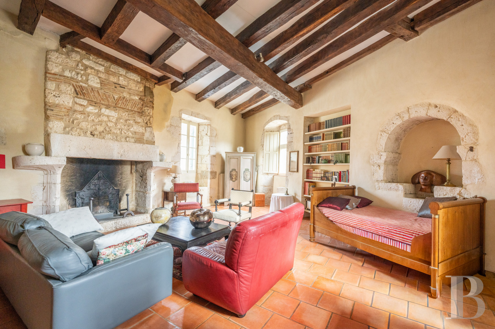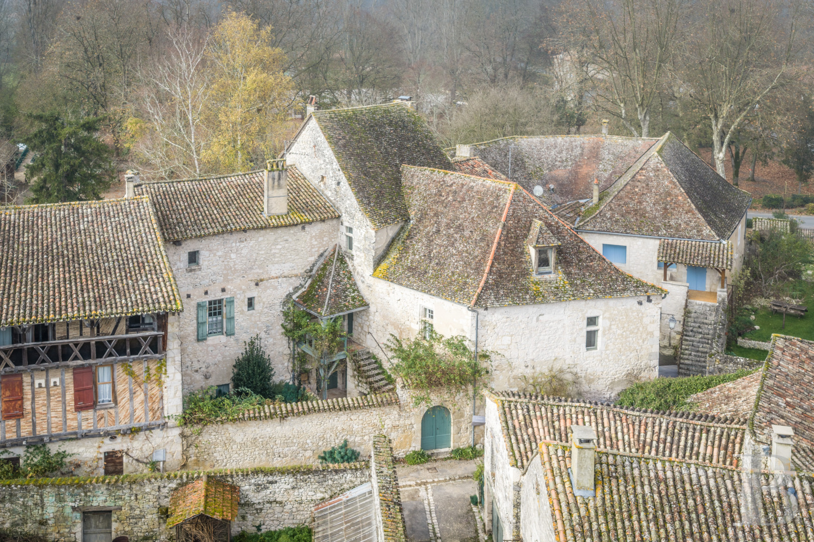 Édifiée au 14e s., une demeure ancienne qui se développe en profondeur depuis la ruelle par une succession harmonieuse d’espaces : cour dallée, jardin clos puis volumes intérieurs. Habiter une architecture médiévale implique l’adhésion à ses singularités : l’épaisseur des murs, certaines irrégularités, un entretien adapté. La position dans un village typiquement périgourdin permet de vivre au rythme du marché dominical, des commerces et des restaurants, tandis que la cour et le jardin préservent une véritable intimité. La maison séduira des amateurs de patrimoine ou une famille désireuse de réunir plusieurs générations sous le même toit, tant ses volumes sont vastes. Les combles et la grange ouvrent la voie à de futurs aménagements, tandis que le salon établit un lien naturel avec l’atelier voûté du niveau inférieur grâce à un escalier intérieur et se prêterait aussi bien à la création qu’à l’exposition.