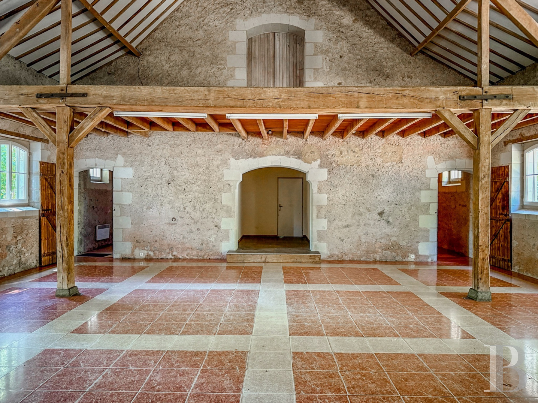 Dans un long corps de bâtiment qui forme l'aile ouest, un espace modulable abrite trois salles de réception d'une capacité de 70 personnes chacune, disposées en enfilade et qui peuvent être réunies en un seul volume. Les sols alternent carrelage et pavage, les murs sont enduits et la charpente apparaît par endroit. Toutes les installations requises pour la sonorisation et l'éclairage sont entièrement intégrées. Un vestiaire permet d'accueillir les convives tandis qu'une salle attenante est dédiée au traiteur. Dans le prolongement du bâtiment, d'anciennes écuries abritent trois boxes à chevaux.