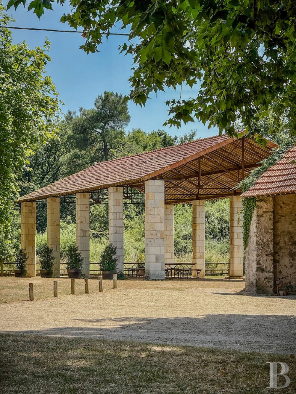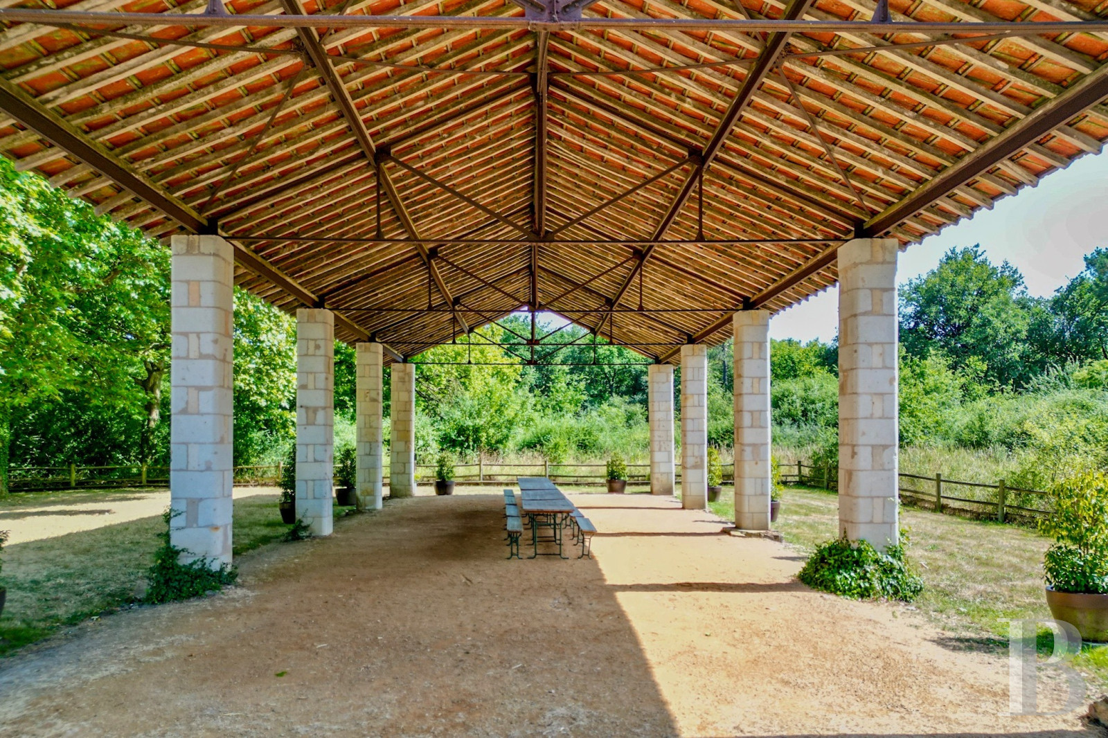 Plus au sud, à proximité d'un étang, une halle ouverte sur un cadre champêtre se prête aux cérémonies laïques et aux vins d'honneur. Sa charpente de bois et métal repose sur des piliers en pierre de tuffeau. La vaste surface ouverte facilite les aménagements éphémères.