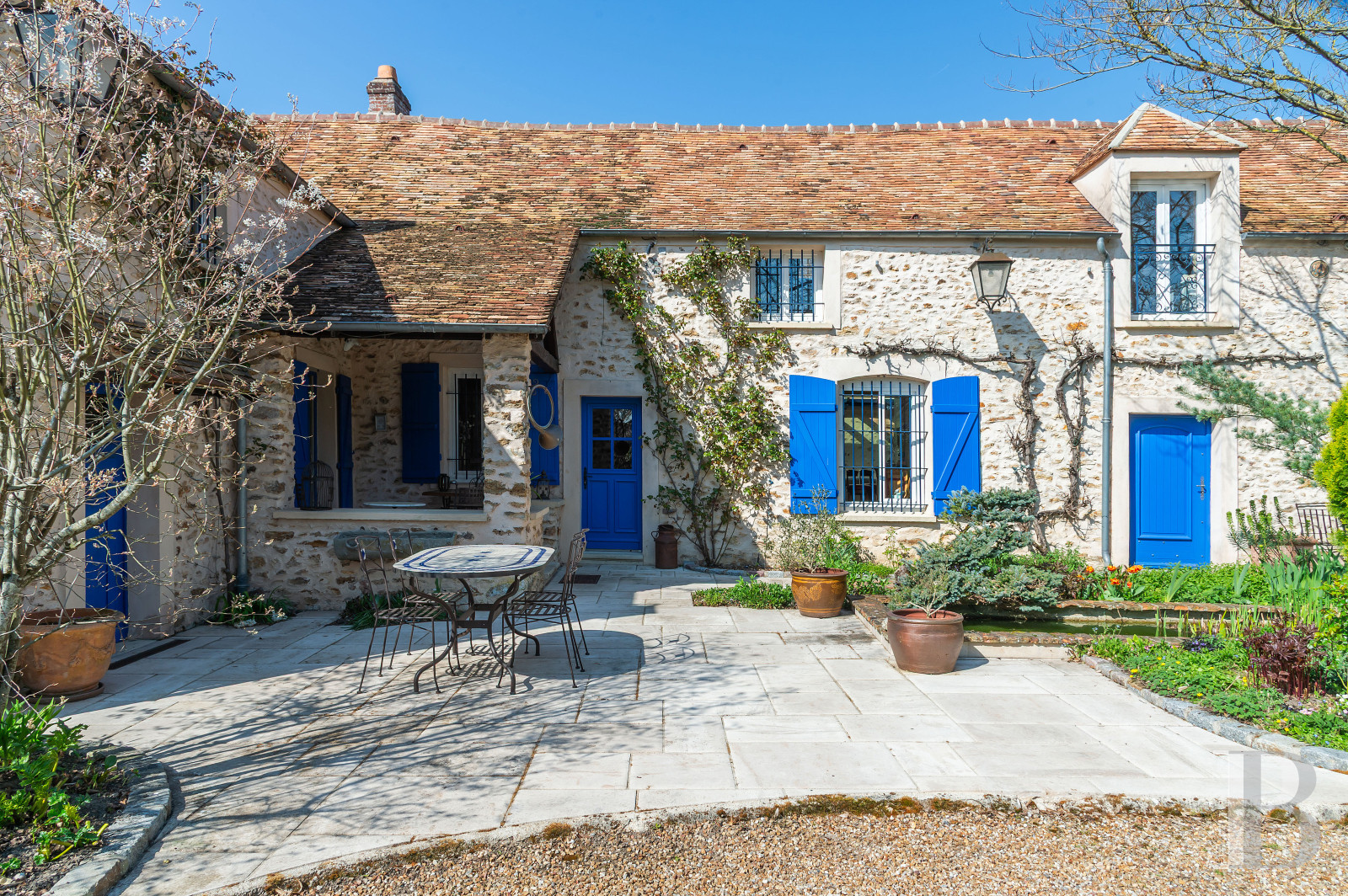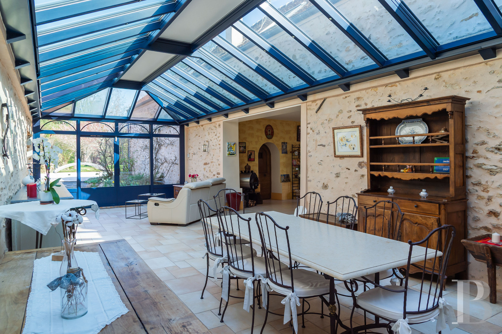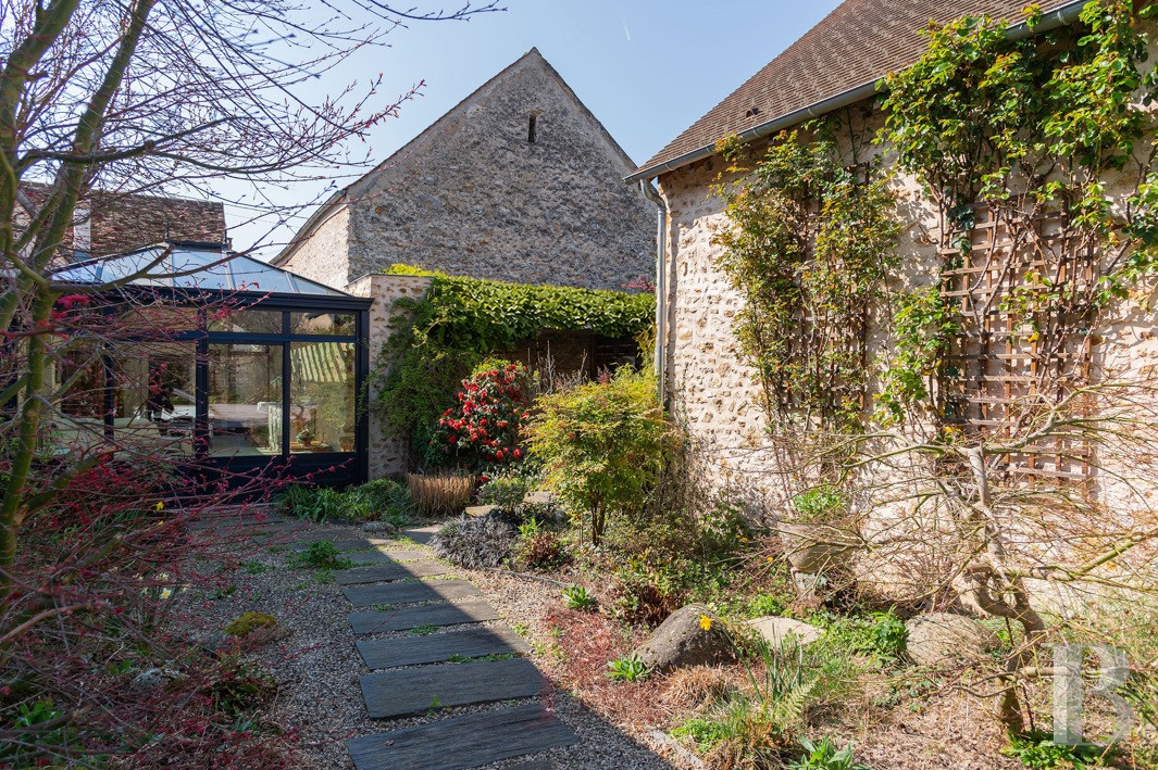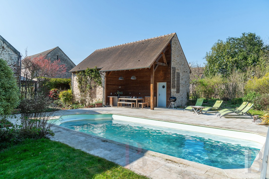 Un ancien corps de ferme réinterprété pour un usage familial, dont la restauration attentive préserve l’esprit originel et promet un confort de vie des plus contemporains. Les volumes des pièces de réception, largement ouverts sur le jardin, composent un cadre fluide et lumineux. Au centre de la maison, la grande verrière établit un dialogue constant entre intérieur et extérieur, pour laisser passer la lumière et les saisons rythmer les espaces. La grange autorise encore de multiples évolutions selon les projets. Entre jardin, piscine, maison d’amis et accès direct aux espaces forestiers voisins, la propriété laisse présager une vie familiale à la campagne, à distance mesurée de Paris.