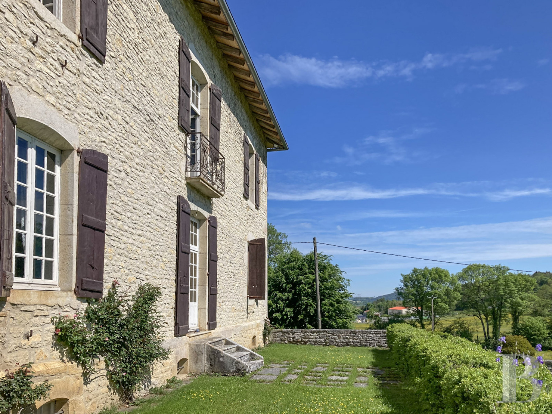 Au calme des premiers contreforts du Jura, au cœur d'un environnement naturel, quoique à proximité immédiate des commodités, la noble demeure se dresse fièrement. Les volumes et les éléments de décor architecturaux sont dignes des plus belles bâtisses du 18ᵉ s. ; du remarquable salon de réception à l’intemporelle cage d’escalier, aux plafonds à la française et aux voûtes à croisée d’ogives, en passant par les cheminées, présentes dans la plupart des pièces.