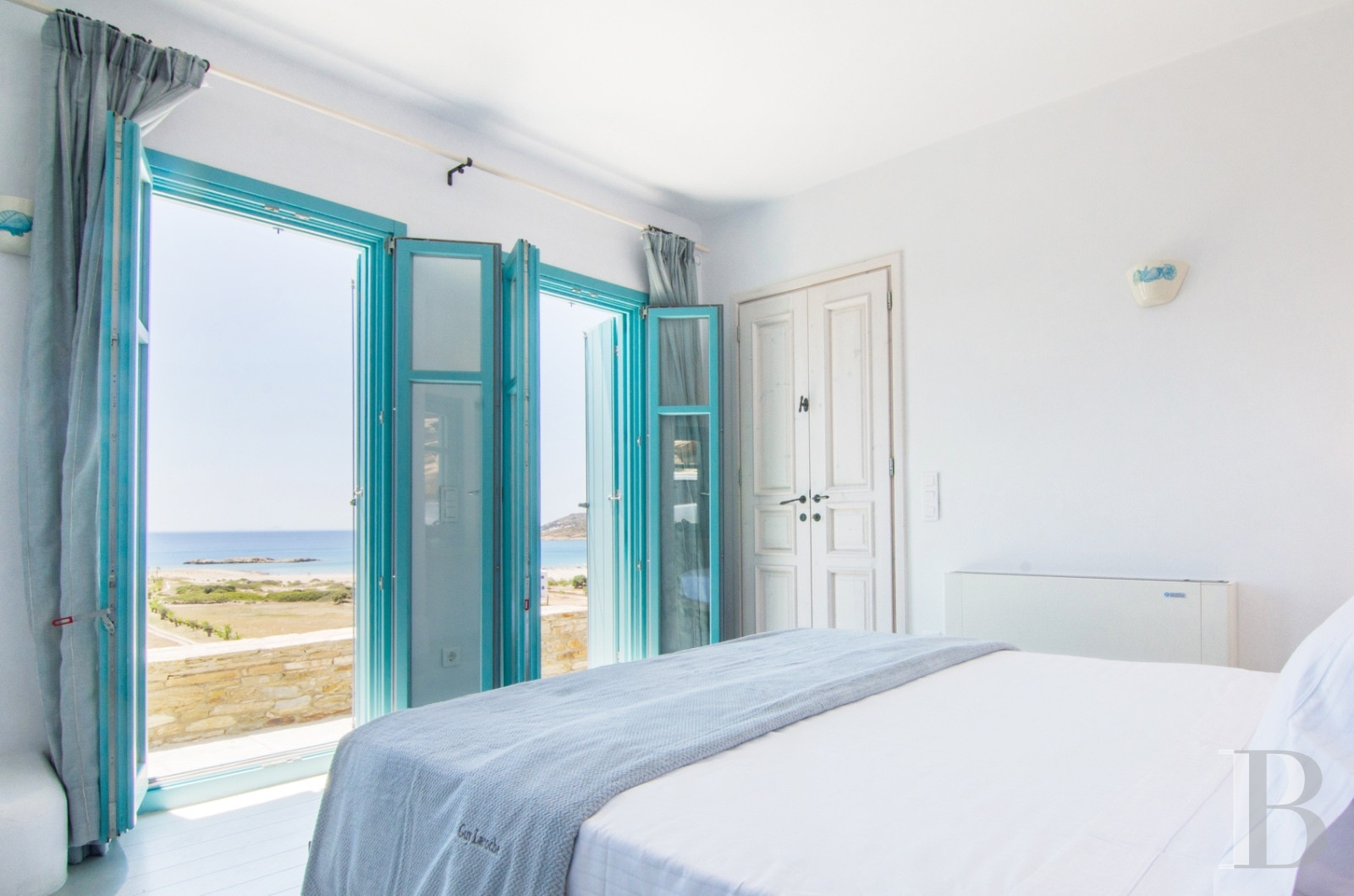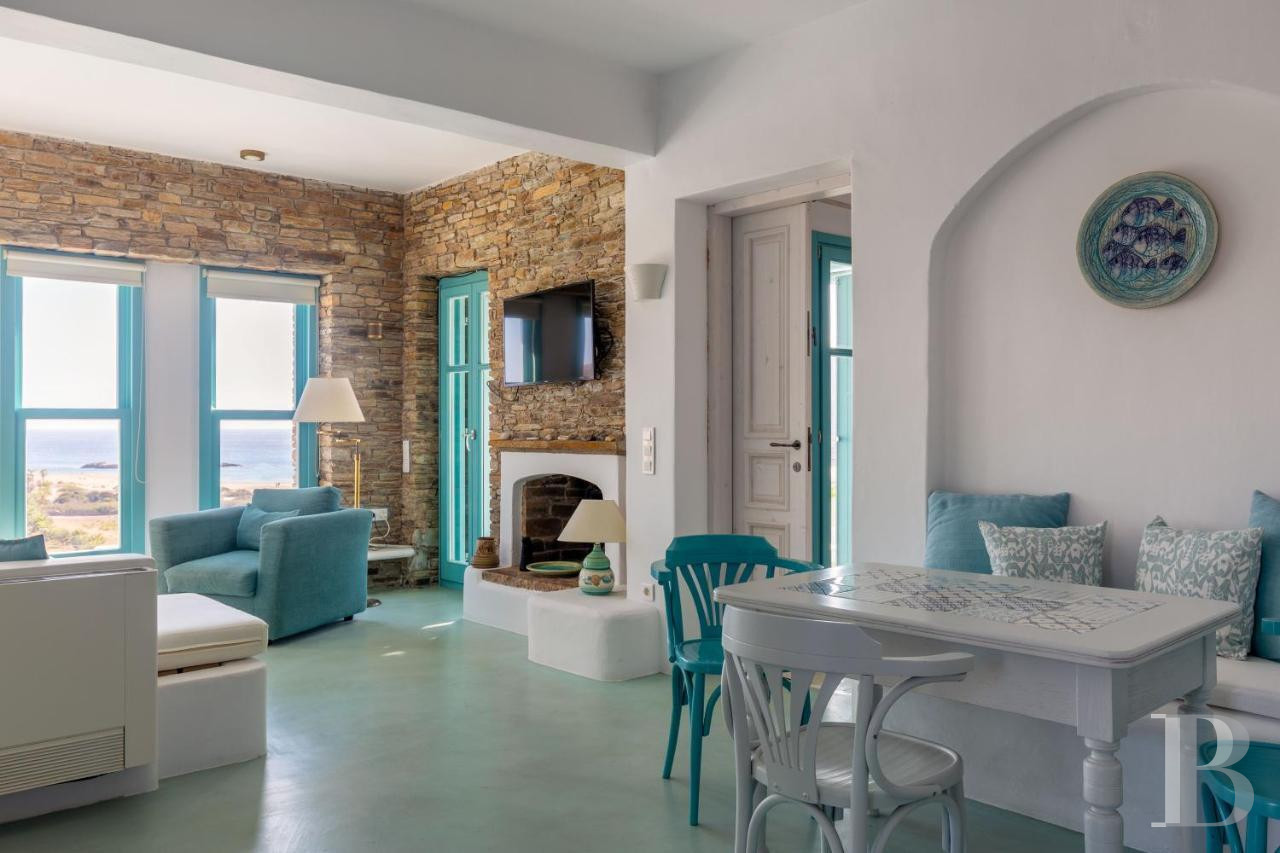 Ios, jadis escale des navigateurs antiques voguant entre Santorin et Paros, déploie au sud de son territoire rocheux la baie de Magganari, anse préservée où quelques villas s'accrochent aux pentes face à l'Égée. Édifiée sur 900 m² de terrain orienté plein sud, une demeure de 200 m² distribue ses trois chambres parentales avec salles de bain attenantes sur trois niveaux indépendants. Le jardin méditerranéen descend en terrasses vers les criques de Tripiti et Tris Ekklisies, accessibles à pied par les sentiers côtiers qui relient les plages désertes du sud insulaire. Une propriété où l'architecture cycladique contemporaine épouse le relief sans ostentation.