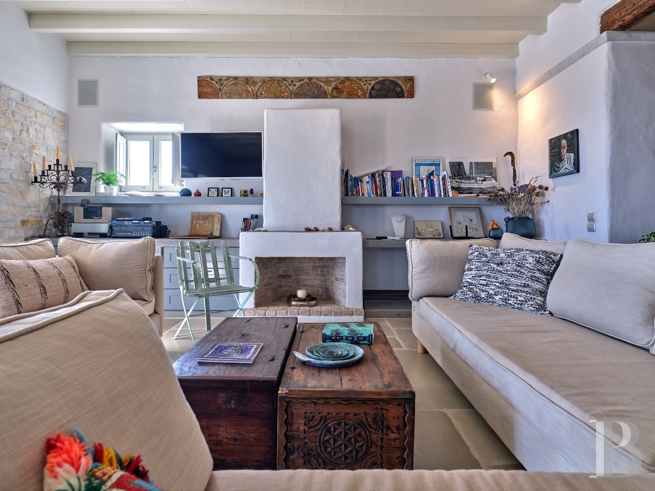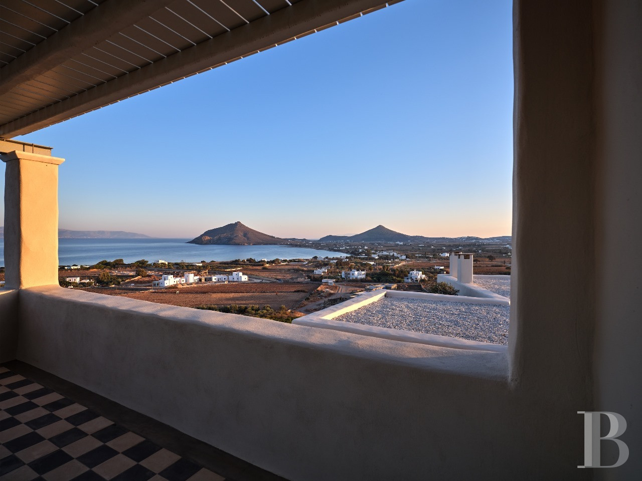 Il est des villas dont la beauté tient moins à la démonstration architecturale qu'à l'équilibre qu'elles instaurent entre modernité épurée et harmonie avec le paysage insulaire. Celle-ci en fait partie. Son architecture contemporaine, dominant discrètement la baie d'Isterni, conjugue rigueur des volumes spacieux et intensité des perspectives maritimes. À l'intérieur, les espaces généreux, les ouvertures panoramiques sur la mer et le ciel bleu, et la séparation harmonieuse entre résidence principale et grande maison d'hôtes par une chapelle privée, créent un univers à la fois intime et ouvert, où rien n'est contraint. La position en hauteur sur les collines d'Isterni, hameau tranquille de Paros, offre ce privilège de perspectives maritimes exceptionnelles dans un environnement préservé de toute construction voisine. Tout est là, rien à ajouter.