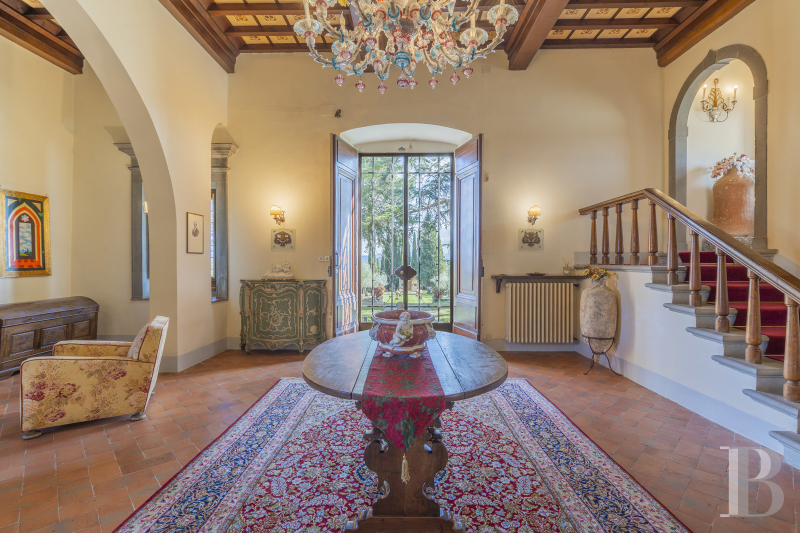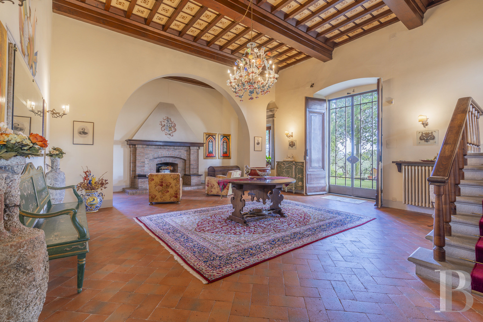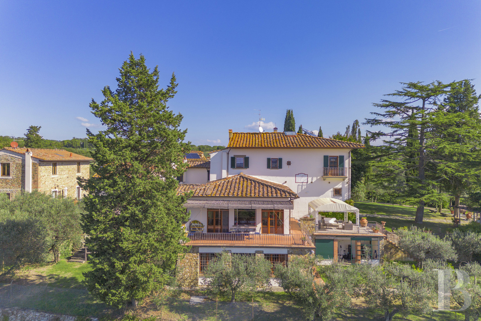 Les collines toscanes abritent une villa Renaissance où la restauration a préservé l'essentiel sans muséifier les lieux. Caissons aux plafonds, cheminées de pierre, larges baies qui capturent le relief : l'architecture respire une sobriété noble, ancrée dans son époque sans la pasticher. Le jardin déploie plusieurs atmosphères, du bosquet ombragé aux terrasses plantées, jusqu'à la piscine suspendue face à la vallée. La chapelle privée, rare dans ce type de propriété, rappelle que l'habitat toscan intégrait le spirituel au quotidien, sans ostentation. Les villes d'art restent à portée, les commodités accessibles, mais le site conserve son isolement visuel et son calme. Résidence familiale, maison d'hôtes ou refuge saisonnier : les volumes permettent plusieurs lectures. Un bien qui tient sa force de cette authenticité retrouvée, entre respect du patrimoine et confort contemporain, loin des clichés toscans convenus.