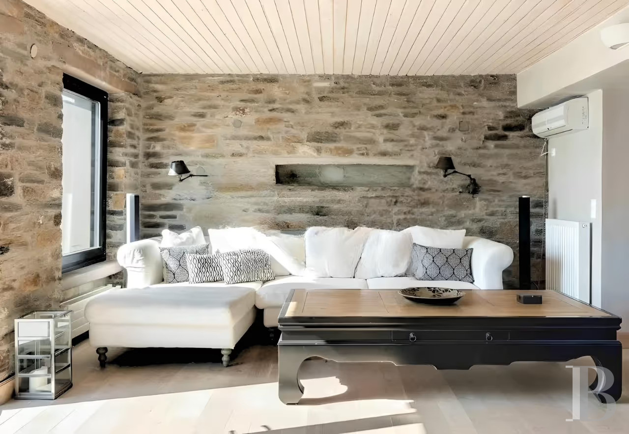 Un ensemble bâti et paysager des plus harmonieux avec, côté terrasse, des espaces de vie extérieure multiples organisés autour de la piscine d'eau salée incurvée qui dialogue avec la mer, et, côté falaise, une architecture en pierre, bois et roc qui s'intègre avec discrétion dans son environnement rocheux tout en dominant majestueusement les perspectives sur la mer Égée et les couchants méditerranéens. Un lieu particulièrement stimulant pour l'amateur d'architecture intégrée dans un cadre idéal pour étés grecs prolongés ou escapades depuis Athènes.