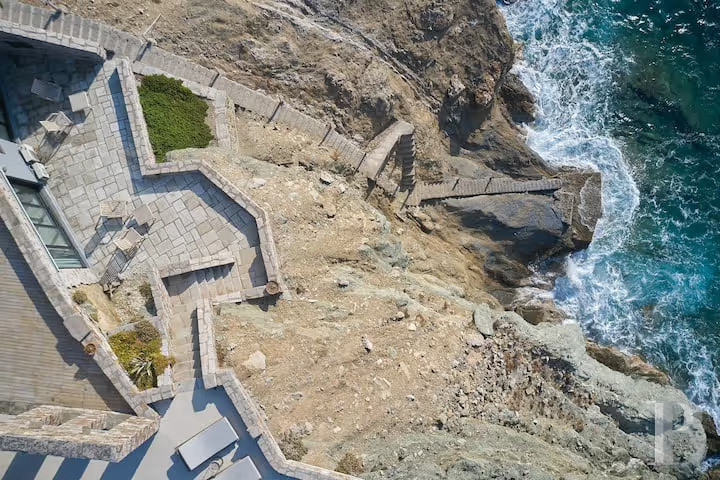une villa perchée sur une falaise avec sentier privé vers le rivage