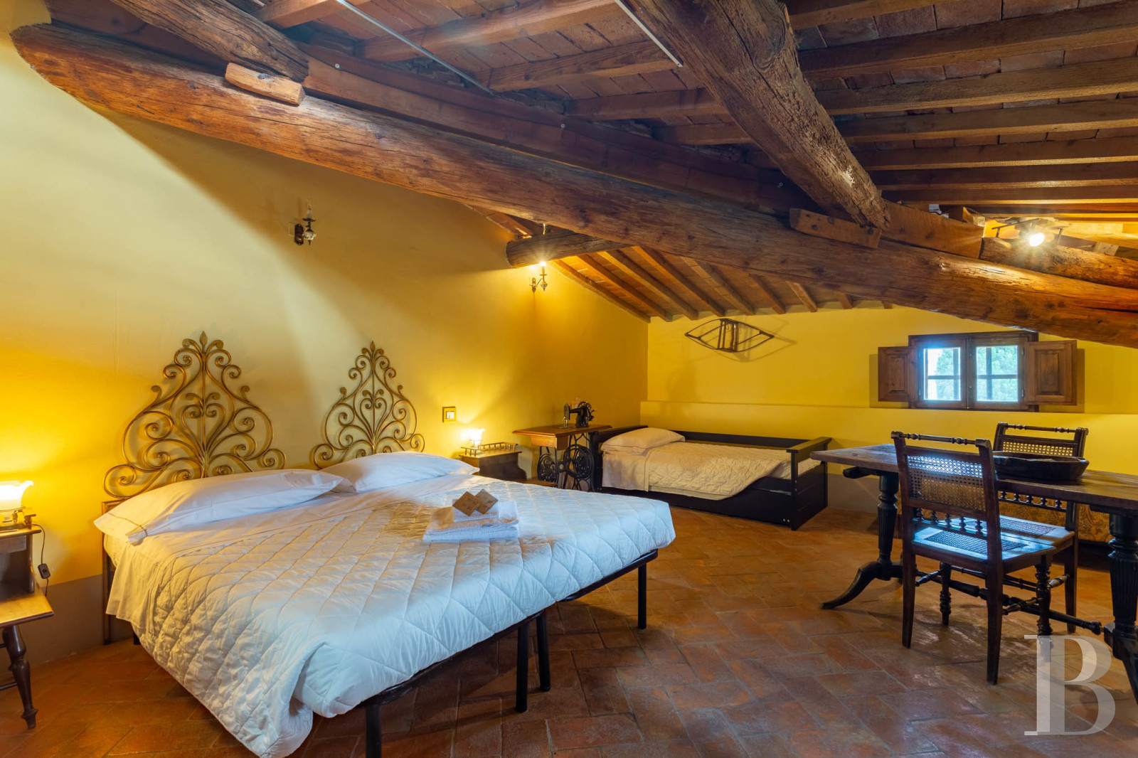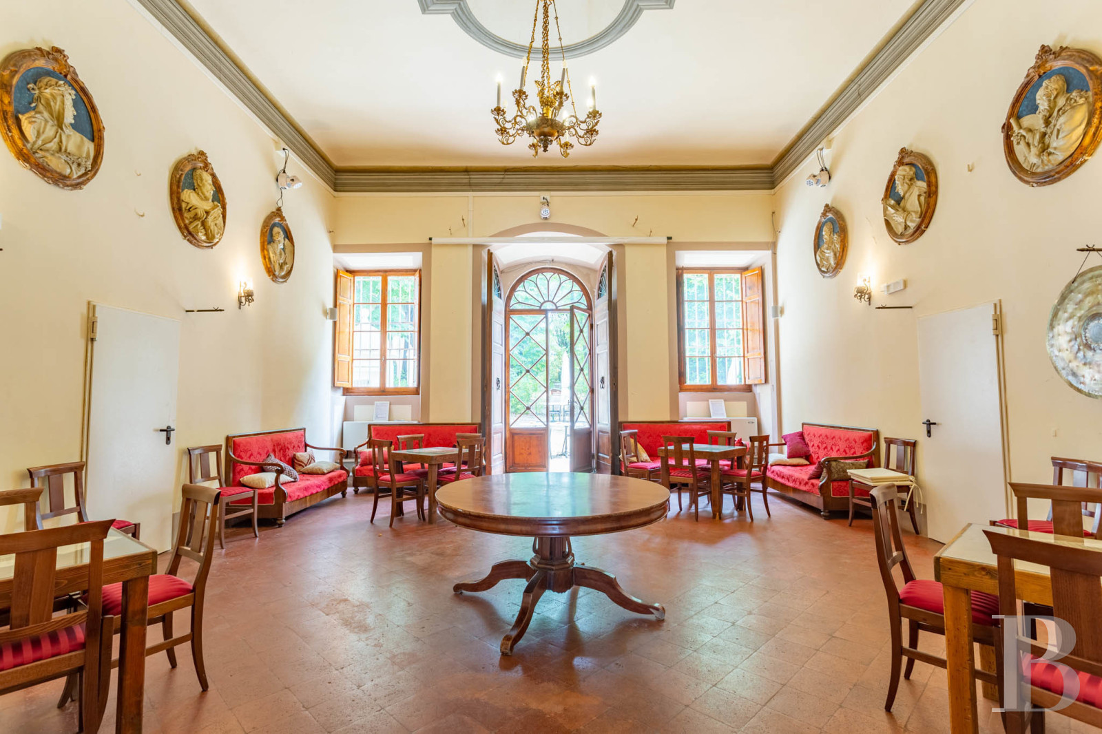Une villa dont l'architecture témoigne d'un passé aristocratique. Les volumes intérieurs ont retrouvé leur clarté, les chambres conservent leurs éléments de décors, tandis que le jardin à l'italienne ordonne l'espace extérieur autour de la piscine et de l'oliveraie environnante. Les anciennes caves abritent désormais un espace dédié au bien-être, prolongeant la vocation d'accueil des lieux. Un restaurant permet de recevoir dans la continuité de la tradition florentine. L'ensemble forme une propriété cohérente où chaque élément trouve sa place sans ostentation. Entre résidence privée et maison d'hôtes, une villa qui réunit les conditions d'une vie toscane où le patrimoine bâti dialogue avec un environnement préservé, propice aussi bien à la vie familiale qu'à l'activité hôtelière de qualité.