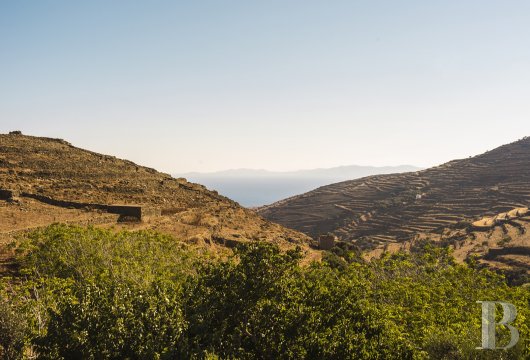 Selon la tradition, les Cyclades sont des nymphes pétrifiées par Poséidon, formant un cercle autour de Délos, berceau d’Apollon. Tinos, dédiée à Éole, dieu des vents, fut un carrefour de la mer Égée et le dernier bastion vénitien jusqu’en 1715. Dans le hameau de Modenados, cette demeure du 17e siècle conserve intacte son atmosphère d’origine, entre influences vénitiennes et traditions locales. Au 19e siècle, la maison appartenait à un capitaine impliqué dans le commerce de céréales avec la Russie. Le précédent propriétaire, reporter et écrivain grec, qui l’avait restaurée sommairement dans les années 1970, l’a vendue à ma mère en 2008. Nous avons entrepris une restauration complète en utilisant du marbre de réemploi, issu de bâtiments néoclassiques et traditionnels démolis en Grèce dans les années 1990 et provenant de carrières antiques.